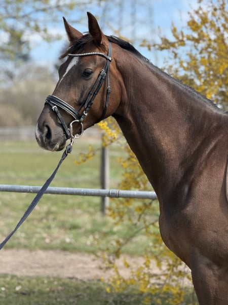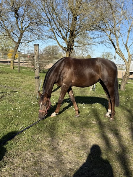 Talisman ist ein 4-jähriger Dunkelfuchs aus eigener Zucht, der mit viel Qualität, Arbeitsbereitschaft und einem feinen Ansprechverhalten überzeugt. Er befindet sich altersgerecht in der Ausbildung und zeigt sich dabei leistungsbereit, sensibel und mit guter Grunddynamik ausgestattet. ✨ Charakter & Typ: • fein an den Hilfen • aufmerksam und reaktionsschnell • lernwillig und mit klarem Kopf • kein „abgestumpftes“ Pferd, sondern ein echter Partner für die feine Reiterei ✨ Ausbildungsstand: • seit einem 3/4 Jahr unterm Sattel • geht ins Gelände • kennt Doppellonge und Stangenarbeit • verladefromm und unkompliziert im Handling ⚠️ Wichtig: Talisman ist kein Anfängerpferd. Unter dem passenden Reiter zeigt er sich absolut kooperativ und leistungsbereit und bringt alles mit, um sich zu einem tollen Sport- oder gehobenen Freizeitpartner zu entwickeln. ✨ Für wen geeignet: • erfahrene Reiter mit Gefühl • ambitionierte Freizeitreiter oder Turniereinsteiger • Menschen, die Freude daran haben, ein junges Pferd weiter zu fördern Wir wünschen uns für Talisman einen Platz bei einem Reiter, der sein Potenzial erkennt und ihn mit Ruhe, Klarheit und Erfahrung weiter ausbildet. Preis zzgl.MwSt. Für ein Probereiten rufen wir 30 € auf, die selbstverständlich bei Kauf zurück erstattet werden.