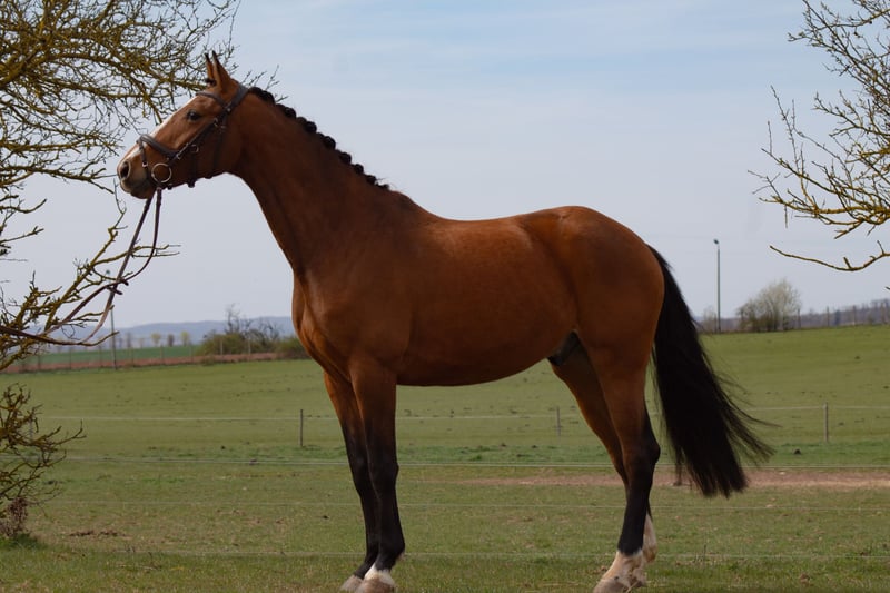 Dieser feine Kerl sucht ein neues Zuhause Zum Verkauf steht unser Adonis, ein vielversprechender, ca. 167 cm großer 5-jähriger Wallach, der durch seine Qualität, seine Rittigkeit und vor allem durch seine außergewöhnliche Einstellung zur Arbeit überzeugt. Dieser feine Kerl ist seit knapp 2 Jahren unter dem Sattel und wurde altersentsprechend vielseitig gefördert. Er kennt sowohl die dressurmäßige Arbeit als auch das Springen und konnte bereits erste Erfahrungen an Geländehindernissen sammeln. Dabei zeigt er sich stets mutig, aufmerksam und mit viel Übersicht. Besonders hervorzuheben ist seine große Arbeitsbereitschaft: Adonis möchte immer gefallen, arbeitet motiviert mit und bringt genau die Einstellung mit, die man sich für den Vielseitigkeitssport wünscht. Am Sprung zeigt er viel Freude, denkt mit und vermittelt seinem Reiter jederzeit ein sicheres und positives Gefühl. Auch im täglichen Umgang ist er absolut brav, freundlich und unkompliziert – ein Pferd, mit dem die tägliche Arbeit einfach Spaß macht. Abstammungsseitig bringt er beste Voraussetzungen für den Vielseitigkeitssport mit: Er stammt ab von Araldik, einem Enkel des legendären Heraldik xx, der weltweit als einer der prägendsten Vererber im Vielseitigkeitssport gilt. Dieses Blut steht für Härte, Leistungsbereitschaft, Galoppade und Geländeeignung – Eigenschaften, die auch dieser Wallach bereits erkennen lässt. Dieser sympathische Wallach sucht ein 5-Sterne-Zuhause bei einer ambitionierten Reiterin oder einem Reiter, der seine Qualität erkennt und ihn weiter fördert. Ein Pferd mit echter Perspektive für den Vielseitigkeitssport – für alle, die Wert auf Einstellung, Rittigkeit und Entwicklungspotenzial legen. Ein Probereiten ist nach Absprache jederzeit möglich. Aufgrund seines Alters und Ausbildungsstandes wünschen wir uns eine Reiterin oder einen Reiter mit soliden Grundkenntnissen und sicherem Sitz, der ihn liebevoll weiter fördert. (kein Anfängerpferd) Für das Probereiten berechnen wir eine Gebühr von 25 €, die beim Kauf selbstverständlich angerechnet wird.