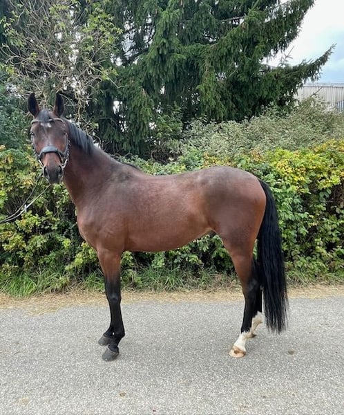 "Doodle Jump", ein sehr sympathischer Wallach mit sehr guten GGA. Doodle kam im Herbst zur weiteren Ausbildung zu uns. Vom ersten Tag an überzeugte er durch seine sympathische Art, er ist sehr brav und lieb im Umgang. Auch beim Tierarzt oder Hufschmied ist er sehr anständig. Er liebt es gekuschelt zu werden und Zeit mit seinem Menschen zu verbringen. Beim Reiten zeigt er eine gute Rittigkeit, geht unerschrocken auf dem Aussenplatz und in der Halle. Schon aufgrund seiner sehr schönen Abstammung, ist davon auszugehen, das hier ein Nachwuchspferd mit den höchsten Rittigkeitsnoten heranwächst. Im Galopp zeigt er eine sehr gute bergauf Tendenz und eine gute Versammlungsbereitschaft, sein Trab ist schwungvoll, gut zu sitzen, der Schritt ist taktsicher und raumgreifend. Er ist vollständig (turniermäßig) geimpft gegen Tetanus, Influenza und Herpes. Vorne ist er beschlagen und er ist immer regelmäßig entwurmt worden. Er besitzt Röntgenbilder o.b.B. Für ein Kennenlernen mit Probereiten wird eine Gebühr von 25 Euro sofort in bar fällig.