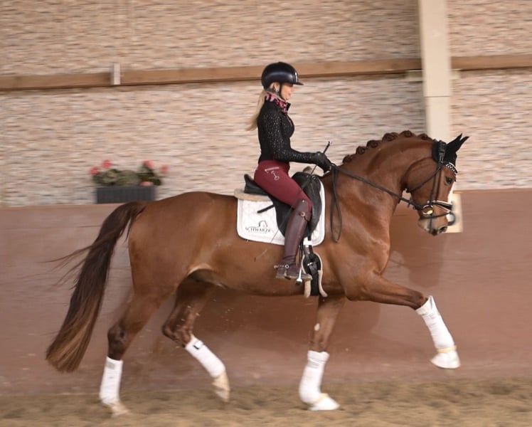 Liebe Interessenten, Für Terminvereinbarungen Probereiten senden Sie mir bitte eine WhatsApp. Für weitere Fragen bin ich tagsüber per WhatsApp erreichbar, telefonisch erreichen Sie mich am Besten zwischen 16 und 19 Uhr. Ich freue mich auf eine Kontaktaufnahme www.angelina-devittorio.de ⭐️Espacito⭐️ Alter: 5 Jahre (2021) Größe: ca 1,67 m Abstammung: Escolar x Sir Donnerhall Ausbildungsstand: Dressurpferde A-L Niveau AKU: Gute Rö Bilder vorhanden Wunderschöner 5-jähriger Dressurnachwuchs –Sohn des Escolar Zum Verkauf steht ein hochveranlagter, 5 jhr Wallach mit bester Abstammung Und drei herausragenden Grundgangarten. Er überzeugt durch Ausdruck, Qualität und viel Potenzial für den gehobenen Dressursport. Dieses Pferd ist ein Dressurkandidat für höchste Ansprüche. Sehr angenehm zu reiten mit sehr ausdrucksstarken Grundgangarten. Er verfügt über einen herausragenden Schritt eine tolle Bergaufgallopade und eine sehr gute Trabmechanik.Aktuell ist er auf Dressurpferde A/L Niveau susgebildet. Ein echtes Zukunftspferd mit Perspektive für das große Viereck. Absolut amateurtauglich, für jeden Jungpferdeerfahrenen Reiter ab A Niveau geeignet. Er wird nur in beste und fördernde Hände verkauft. Da er aufgrund Zeitmangel noch nicht öffentlich vorgestellt wurde, wird er weit unter Wert verkauft. Im Umgang ist ja super lieb und unkompliziert, total Menschenbezogen und verträglich mit anderen Pferden. Hier steht ein hochveranlagtes Dressurpferd mit hervorragender Perspektive zum Verkauf ⚜️Tel: 0171-3438949 ⚜️a.devittorio@web.de ⚜️https://www.ehorses.de/angelinadevittorio Facebook und Instagram Angelina De Vittorio