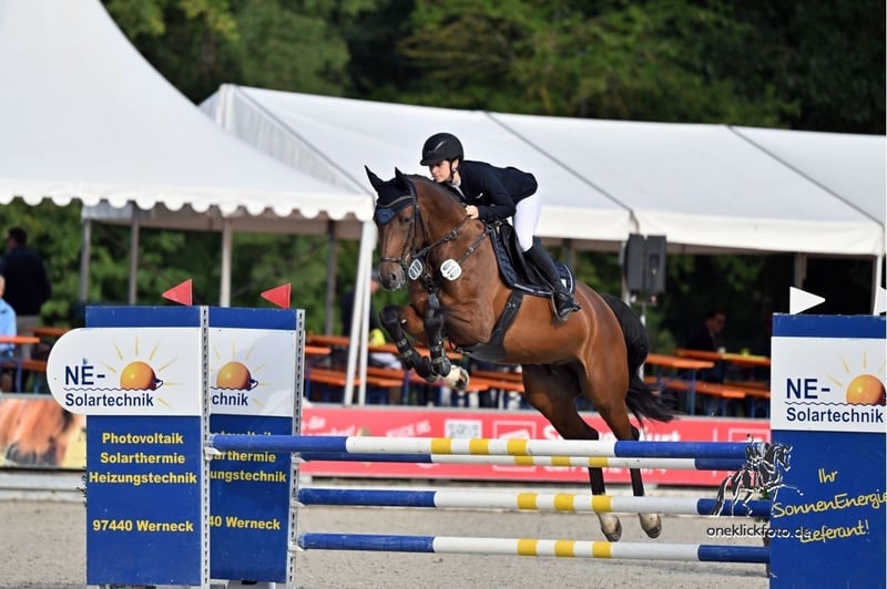 Wegen Bestandsaufgabe steht dieser top Youngster zum Verkauf. Er ist aus eigener Zucht und bei uns aufgewachsen. Nur in beste, fördernde Hände abzugeben. Abstammend vom selbst hoch erfolgreichen Baloutair, aus einer Carinjo Mutter, die selbst bis zur schweren Klasse siegreich war, lässt dieser 5j. Wallach keine Wünsche offen. Tolle Technik, tolle Galoppade, grenzenloses Vermögen. Er war bereits 4j. mehrfach Springpferde A platziert. Dieses Jahr mehrfach Springpferde A siegreich und Springpferde L 2. On Top kommt, dass er wirklich sehr leichtrittig ist und die richtige Einstellung zum Sport besitzt. Somit ist er durchaus auch für Amateur Reiter mit gehobenen Ansprüchen interessant. Durch seinen unkomplizierten Charakter, auch für Junioren/ Junge Reiter sehr interessant. Alles in allem, ein echtes Traumpferd. Bei Interesse oder Fragen einfach melden, Videos können verschickt werden. AKU wird bei Kaufinteresse gemacht.