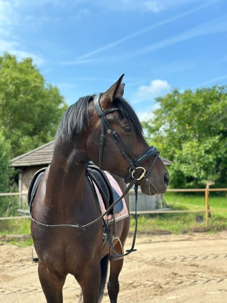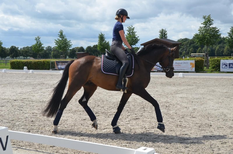 Zum Verkauf steht ein äußerst vielversprechender 5-jähriger Wallach mit moderner und sportlich hochinteressanter Abstammung Belantis || x Fantastic. Dieses junge Dressurpferd überzeugt durch seine sehr gute Rittigkeit, seine Motivation sowie seine positive Arbeitseinstellung. Der Wallach zeigt sich unter dem Reiter stets aufmerksam, ehrlich und leistungsbereit. Er arbeitet motiviert mit, ist gut ausbalanciert und vermittelt seinem Reiter ein sicheres, angenehmes Gefühl. Seine Grundgangarten sind taktsicher und gut regulierbar. Besonders hervorzuheben sind sein raumgreifender, kraftvoller Galopp sowie sein sehr guter Schritt, die ihm beste Voraussetzungen für den Dressursport mitgeben. Dank seines ausgeglichenen Charakters eignet er sich sowohl für den ambitionierten Amateur als auch für den Profi, der ein Nachwuchspferd mit Perspektive sucht. Er bringt beste Voraussetzungen für den weiteren Weg im Dressursport mit und ist aufgrund seines Alters noch vielseitig förderbar. Im täglichen Umgang zeigt er sich unkompliziert, brav und menschenbezogen. Mit anderen Pferden ist er sehr gut verträglich, sowohl im Stall als auch auf der Koppel, und kennt das normale Stall und Ausbildungsumfeld. Er macht sowohl bei der Arbeit als auch im Handling viel Freude.