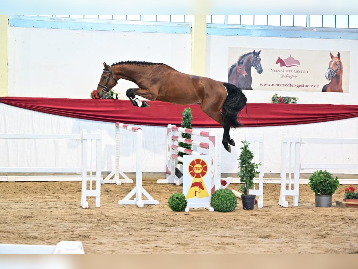 Splendido castrone con ottima attitudine al salto, alla ricerca di mani esperte! In vendita un castrone baio con grande talento per il salto, nato nel 2021. Con un'altezza al garrese di 171 cm, ha la misura perfetta per cavalieri ambiziosi. Ha già ottenuto la qualificazione immediata per il DSP Freispringchampionat 2025 a Lipsia, dove ha dimostrato sicurezza e padronanza del salto, senza lasciarsi intimidire dall'ampia cornice. È dotato di riflessi pronti e grande capacità di valutazione durante il salto. Il suo fratellastro Higgins Red è già vincitore in competizioni internazionali di salto. Il castrone è in ottima salute, con radiografie eccellenti disponibili! Barneby si trova in addestramento di base e ha un carattere amichevole. Per interessati o ulteriori informazioni, sono a disposizione. Visite e prove di salto su appuntamento.