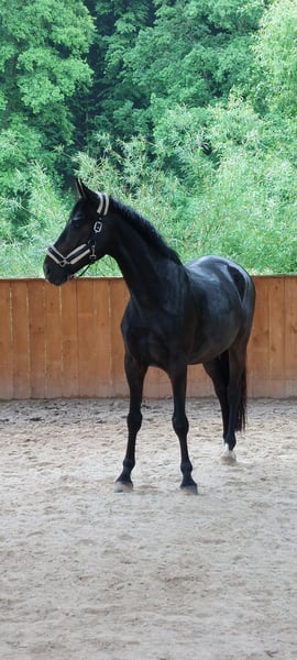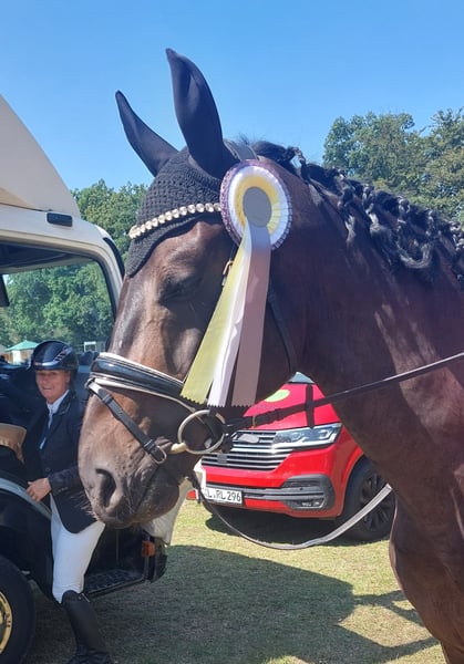 Te koop staat een prachtige, gevoelige 6-jarige ruin van Silvano (Rubinstein I) uit een Kaiserkult moeder, rechtstreeks van de fokker. Sympathique PSL overtuigt met 3 zeer goede gangen en een karakter van goud. In de omgang is hij volledig ongecompliceerd. Hij is op 4-jarige leeftijd voorzichtig onder het zadel gebracht en al succesvol op wedstrijden gepresenteerd. Momenteel is hij succesvol en geplaatst in de dressuurpaardenproef L. Lessen van klasse M worden momenteel voorbereid. Door zijn lichtheid is hij ook geschikt als top amateurpaard, bij voorkeur met ervaring met jonge paarden. Röntgenfoto's uit 2024 zijn beschikbaar. Vanwege een bijbehorende bevinding wordt hij ver onder de waarde verkocht. Proefrijden kan op afspraak altijd plaatsvinden in de vorm van een rijles, die dan bij een verkoop verrekend wordt.
