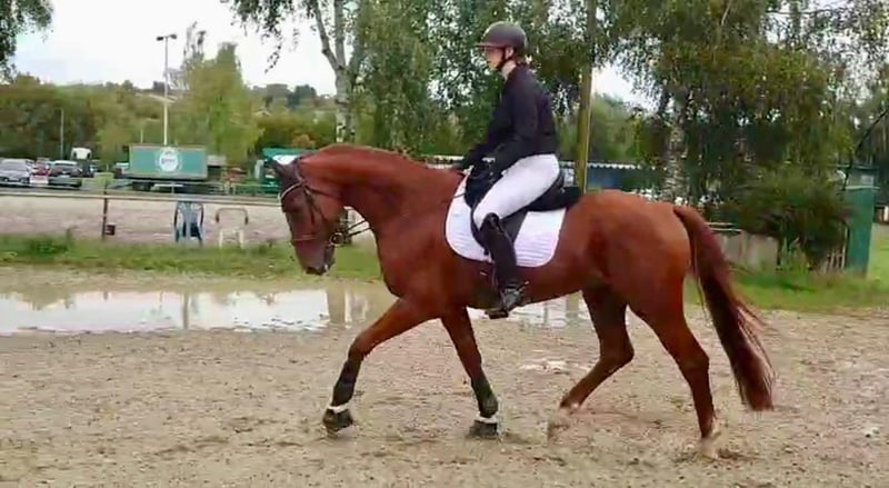 Don Cajano ist ein 6 jähriger Wallach ca. 1,72 groß, abstammend von Don Royal aus einer Quaterback Stute. Er verfügt er über qualitätsvolle GGA und einer guten Ausstrahlung unter dem Sattel. Er befindet sich momentan auf Dressurpferde A-L Nivau ist sehr rittig und er hat Spaß an der täglichen Arbeit und ist stets motiviert. Don ist schmiede- und verladefromm. Aktuell ist er rundum beschlagen, ist regelmäßig entwurmt und war vor kurzem beim „Zahnarzt“. Im Umgang ist er brav und menschenbezogen. Aktuell ist er in Beritt und lernt täglich dazu. Video unter dem Reiter gerne auf Anfrage. Direkt von dem Aufzüchter
