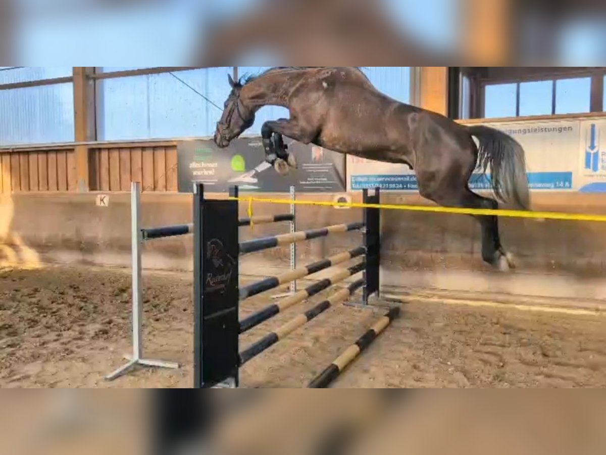 The 6-year-old gelding, "Mc Fly," sired by Mumbai out of Cardenio, stands at 17.4 hh and is a very handsome horse with a somewhat unusual coat color. Mc Fly possesses the right amount of go and remains manageable and clear-headed at all times. Over fences, he impresses with his overview and ability. In daily handling, he is very well-behaved, people-oriented, straightforward, and eager to do his best. Mc Fly is the ideal candidate for someone looking for a young horse with a promising future in show jumping and experience in young horse training. Currently in training, Mc Fly is expected to compete in his first young horse jumping competition within the next 14 days. His price will increase with further training. Directly from the breeder.