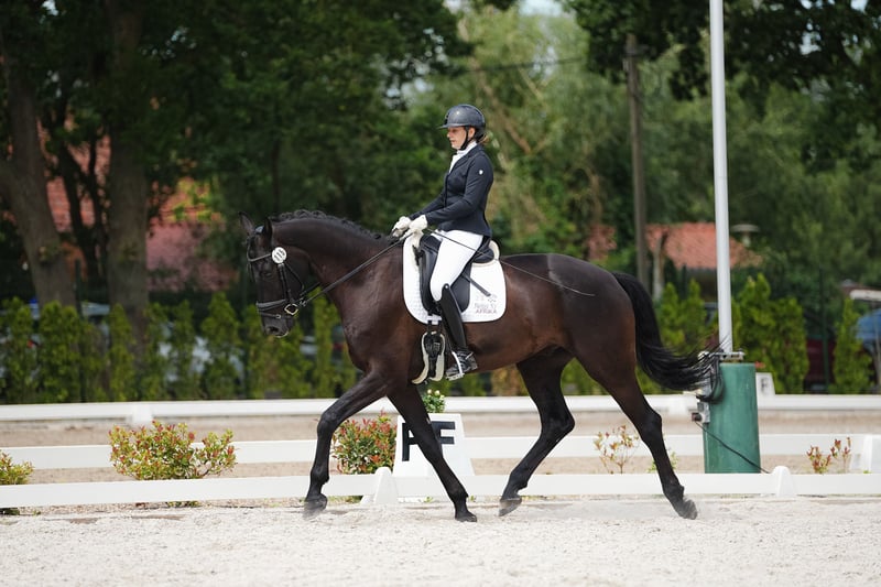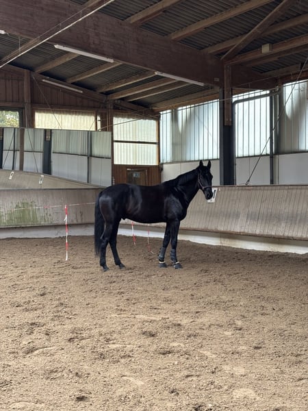 Zum Verkauf steht dieser talentierte 5 jährige Rapp Wallach von Grand Galaxy Win x D’Amour mit einem Stockmaß von 1,80 m. Er zeigt großes Talent in der Dressur und ist bereit sich weiterzuentwickeln. Auf Grund seiner Größe wurde er schonend angeritten und ausgebildet. Er zeigt sich stets motiviert und lernt neue Lektionen in Rekordzeit. Aktuell befindet er sich auf einem soliden Dressurpferde L Niveau. Bisher wurde er ausschließlich in der Dressur gefördert. In der vergangen Saison wurde auf dem Turnier mehrfach erfolgreich in der Klasse A vorgestellt. Neben seinem Dressurtalent zeigt er sich auch beim Freispringen äußerst begabt und motiviert. Das Springen mit Reiter wurde jedoch bisher nicht gefördert. Zudem liebt er das Ausreiten und ist im Gelände wirklich ein absolutes Verlasspferd. Besonders hervorzuheben ist außerdem sein toller Charakter: Stets bemüht, einfühlsam und super lieb, egal ob im Umgang mit Menschen oder anderen Pferden. Bisher zeigte er unter dem Reiter noch keinerlei Unarten wie Bocken, usw. und hat tatsächlich noch nie seinen Reiter in den Sand gesetzt. Dennoch ist zu Betonen, dass es sich um ein junges Pferd handelt, welches noch viel Unterstützung von seinem Reiter benötigt. Bei Interesse, für Videos und weitere Informationen stehe ich gerne zur Verfügung. Besichtigungen und Probereiten sind nach Absprache jederzeit möglich. Wir sind jederzeit erreichbar unter 01749391946. Wir freuen uns auf Ihre Nachricht!