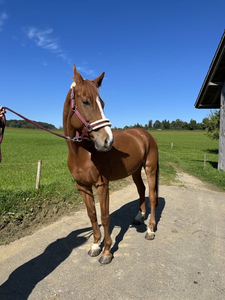 Verkaufe schweren Herzens meinen 8-jährigen Wallach als Beistellpferd. Er hat sich vor rund drei Monaten die Hüfte gebrochen, ist aber inzwischen auf einem sehr guten Weg. Laut Tierärztin besteht eine realistische Chance, dass er in zwei bis vier Monaten sogar wieder reitbar und mit ein wenig Zeit vollständig genesen sein kann und auch wider vielfältig eingesetzt werden kann. Aktuell braucht er keine weiteren Behandlungen, die Knochen liegen stabil aufeinander und verheilen gut, er benötigt lediglich noch etwas Zeit für die vollständige Heilung. Sein derzeitiges Gangbild ist bereits sehr gut, Videos dazu sind vorhanden. Ein leichter Hanentritt war schon immer vorhanden, hat ihn aber nie eingeschränkt. Charakterlich ist er ein absoluter Schatz: unglaublich sozial, versteht sich mit wirklich jedem Pferd egal ob Wallach, Stute oder sogar Hengst. Er kennt Gruppenhaltung ebenso wie Boxenhaltung und fühlt sich in beiden wohl. Da ich aus Persönlichen Gründen nicht mehr die Möglichkeit habe ihm gerecht zu werden suche ich ein tolles Zuhause für ihn, gerne als Beistellpferd mit Perspektive.