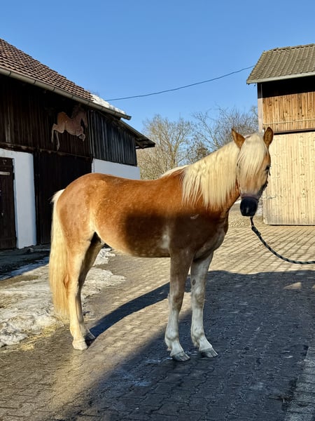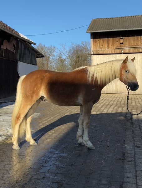 Zum Verkauf steht ein äußerst vielversprechender Haflingerhengst, geboren 2024, mit dem Namen Nando. Er ist ein Edelblut-Haflinger mit 2,735 % Blutanteil und überzeugt durch Sportlichkeit, Typ und eine hochinteressante Abstammung. Abstammung & Leistung: Vater: Nachtprinz (im Besitz von Bernhard Heisinger) – Sieger der Haflinger Körung 2022, Prämienhengst und Leistungshengst. Nachtprinz absolvierte seine Hengstleistungsprüfung 2024 mit einer Endnote von 7,71 und belegte damit den 2. Platz seiner Prüfungsgruppe – ein sehr solides Ergebnis mit Blick auf Rittigkeit, Grundgangarten und Leistungsbereitschaft. Großvater: Nachtstolz – mittlerweile Elitehengst aufgrund seiner überdurchschnittlich erfolgreichen Nachzucht und sportlichen Erfolge. Mutter: Abstammend von Aachen, einer bewährten Linie mit korrektem Fundament und gutem Wachstum. Erfolge: Siegerhengstfohlen bei der Fohlenschau – bereits früh durch Qualität, Ausdruck und Bewegung aufgefallen. Typ & Bewegung: Nando präsentiert sich als sehr sportlicher Haflinger mit überdurchschnittlichen Grundgangarten. Besonders hervorzuheben ist sein raumgreifender, taktsicherer Schritt, der deutlich über dem Durchschnitt liegt. Exterieur & Entwicklung: Aktuelles Stockmaß: ca. 1,43 m Erwartetes Endmaß ca. 1,50 m Sehr edler Kopf, ausdrucksstark, mit langer Mähne und harmonischem Gesamtbild Charakter & Umgang: Absolut brav im täglichen Umgang Regelmäßig beim Hufschmied Geimpft und entwurmt wird täglich zur Koppel geführt Geht problemlos auf den Hänger Perspektive: Aufgrund seiner Qualität, Bewegung und Abstammung bringt Nando alle Voraussetzungen für verschiedene Wege mit. Eine Vorstellung zur Körung im Herbst wäre denkbar. Ebenso ist eine Kastration problemlos möglich, sodass Nando sich auch hervorragend als sportlicher, verlässlicher Freizeitpartner entwickeln kann. Nando wurde von uns als zweites Absetzpferd gekauft. Aus zeitlichen Gründen suchen wir nun einen neuen Besitzer. Er kann gegen Kostenübernahme bei uns kastriert werden. Zudem ist es möglich, dass er zur weiteren Aufzucht bleiben kann.