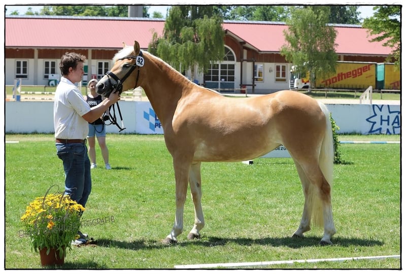 Vater Akitano, Mutter Staatsprämienstute Asterl von Sonnenkönig C. Geb. 22.04.2022; Größe ca. 148 cm. Alina ist eine bildhübsche, ansprechende, sympathische, Edelbluthaflingerstute. Sie wurde mit der Wertnote 7,4 in das Hauptstutbuch eingetragen und prämiert. Alina ist altersentsprechend gefördert, mit Sattel longiert und zeigt sich als unkompliziertes, leicht händelbares Reit- und Familienpferd. Sie verfügt über drei sehr gute GGA, glänzt mit ihrem freundlichen, unkomplizierten grundehrlichen, dem Menschen zugewandten tollen Charakter und ausgeglichenem Temperament. Sie gibt einem ein gutes, sicheres Gefühl und ist im Umgang ein Schatz. Sie ist das perfekte vielseitige Familienpferd für Freizeit, Sport und Zucht. Alina ist Schmiede und Verladefromm, Laufstall- wie auch Boxenhaltung mit Paddock gewöhnt, mit anderen Pferden gut verträglich und unkompliziert. Ihre Mutter die SP und Bundesprämienstute „Asterl“ zeigt ihre Qualität in der Zucht, unter dem Reiter und im Gespann. Aufgrund von Zeitmangel und vorhandenen Nachzucht des Mutterstamms (kann mit besichtigt werden) suchen wir für Alina ein neues liebevolles Zuhause in dem sie neue Aufgaben und die richtige Aufmerksamkeit bekommt.