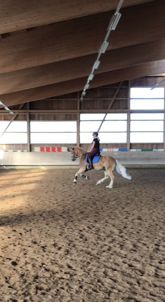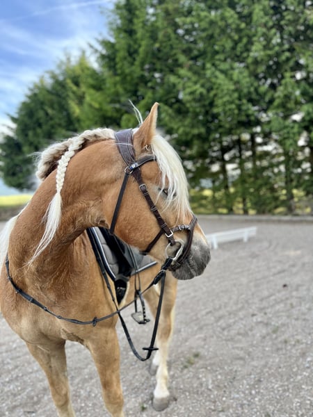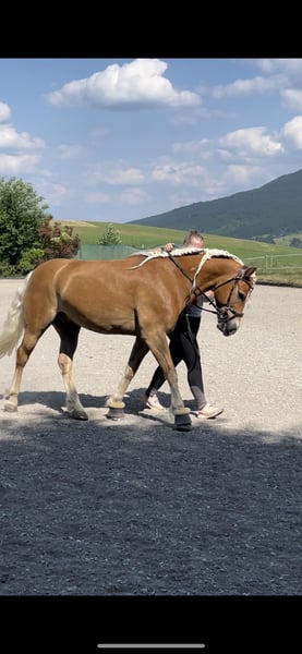 Nakaro ist ein typvoller, ausdrucksstarker Edelbluthaflinger Wallach, welcher Sportlichkeit, Schönheit und Charakter auf ideale Weise kombiniert. Er wird rein aus Zeitgründen verkauft und nur an einen guten Platz abgegeben. Nakaro ist seit 2019 in meinem Besitz, wir haben viele schöne Momente zusammen erleben dürfen. Er wuchs artgerecht im Herdenverband auf, kennt sowohl Offenstall / Aktivstall als auch Boxenstall (mit tägl. Paddock-/Koppelgang). Er ist schmiede- & verladefromm, sowieso regelmäßig geimpft und entwurmt. 2019 wurde er 2. Reserve bei der Edelbluthaflinger Trophy in Moritzburg der 3-jährigen. Er hat viel Spaß und zeigt Ehrgeiz bei der Dressurarbeit. Auch auf der Geländestrecke waren wir schon, nahmen auch immer wieder mal an Springunterricht teil, was er alles toll meisterte. Im Gelände macht er viel Spaß! Wenn man ihm Sicherheit gibt kann man auch gut alleine ausreiten gehen. In der Gruppe geht er sicher vorne weg. Aufgrund seines Temperaments eignet er sich nicht als Anfängerpferd oder Kinderpony. Für weitere Infos gerne melden.
