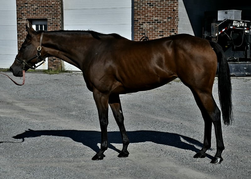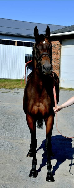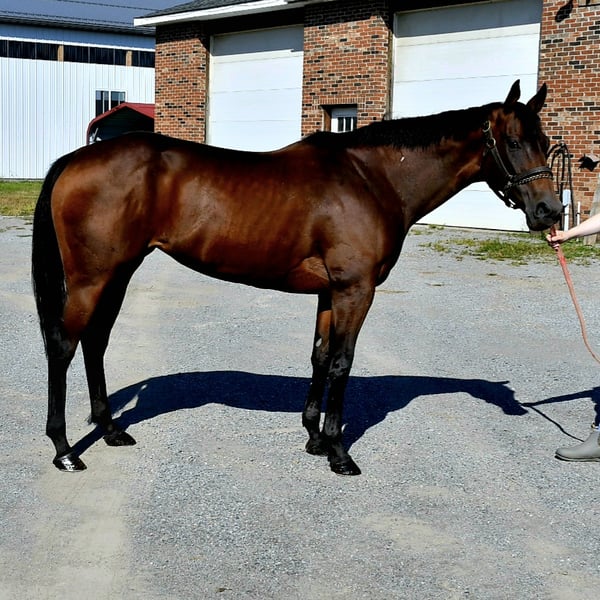 Magna is a little under 15.3 hands. She is a big bodied mare with good bone. She raced a week ago and is just getting turn out. She has not been retrained. No stall vices.