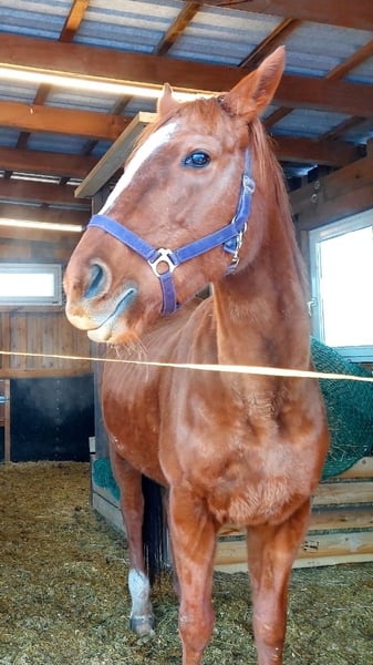 17-year-old Thoroughbred mare. She is healthy, well-ridden, and has had seven wonderful foals so far. She makes an excellent leisure horse. Unfortunately, she does not get along at all with my second mare, so I am offering her for sale, as the two simply do not suit each other. Previously, she was part of a large herd and demonstrated excellent social skills, standing in the middle of the hierarchy and always caring lovingly for the foals, often taking on a leading role in the herd’s foal kindergarten. Currently, she is kept in an open stable, on a winter paddock during the day, and on pasture 24/7 in the summer. She is recently vaccinated, dewormed, examined by the veterinarian, and her teeth have been checked and treated. She is also suitable for breeding; her last foal was born in June 2024.