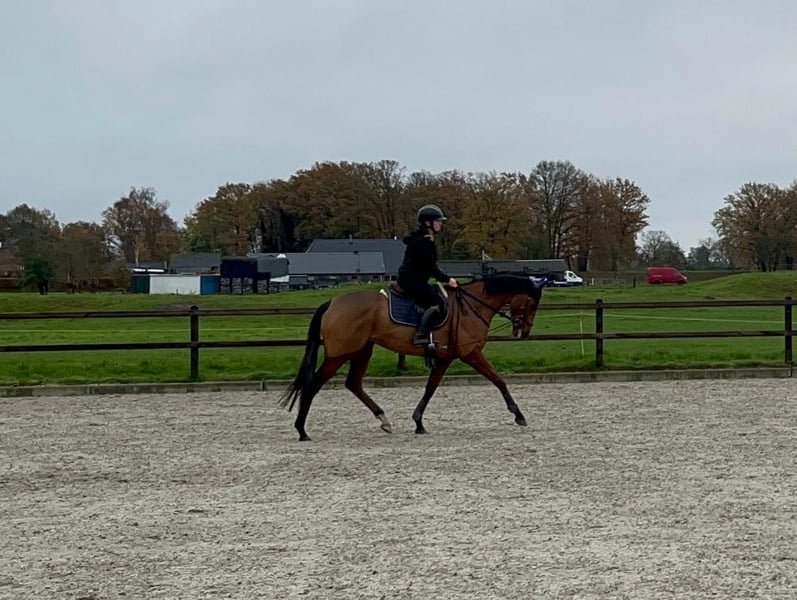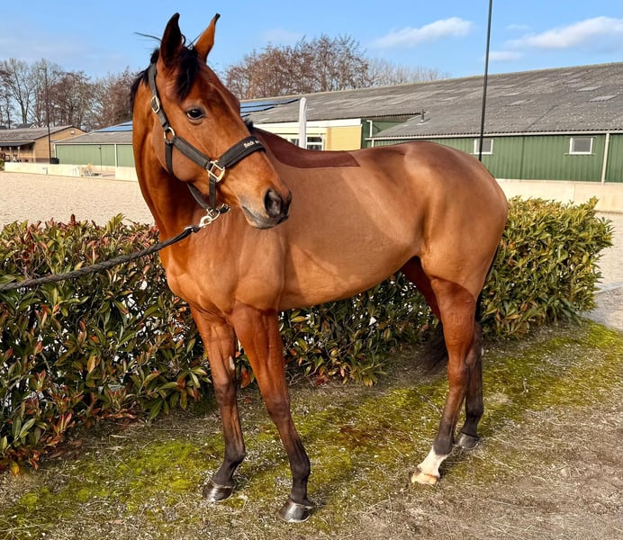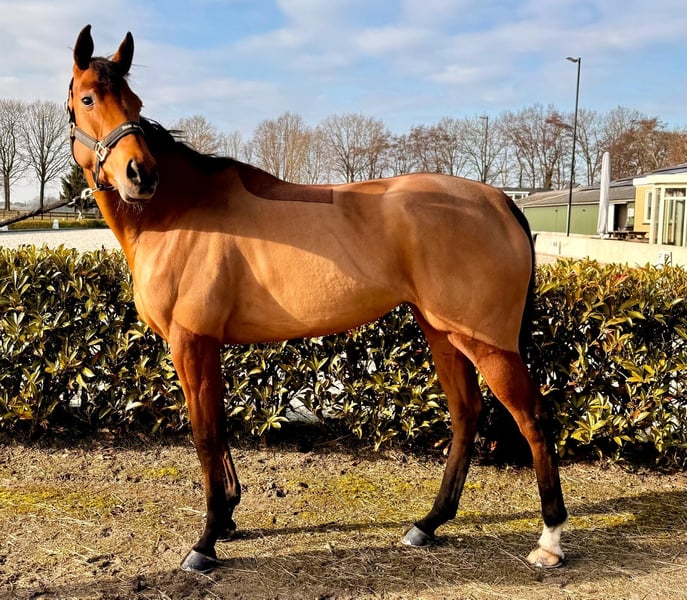 Belly Dancer is a sweet and affectionate 4-year-old mare, approximately 1.71 m tall. Elm Park x Great Dora (Great Journey) She has been in training for a few months in jumping and eventing. She shows a lot of potential, willingness, and work ethic. Due to her age and training level, she is not suitable for beginners. Videos are available. In handling: - Well-behaved with the blacksmith - Calm in the herd - Healthy - Recently seen by the veterinarian - Vaccinations up to date We are looking for a good home where she can continue to develop as a sport horse. Possibly also suitable as a recreational or breeding mare. Location: Renswoude Feel free to come and see her without obligation! Interested? Feel free to send a message. All inspections are permitted at the buyer's expense.