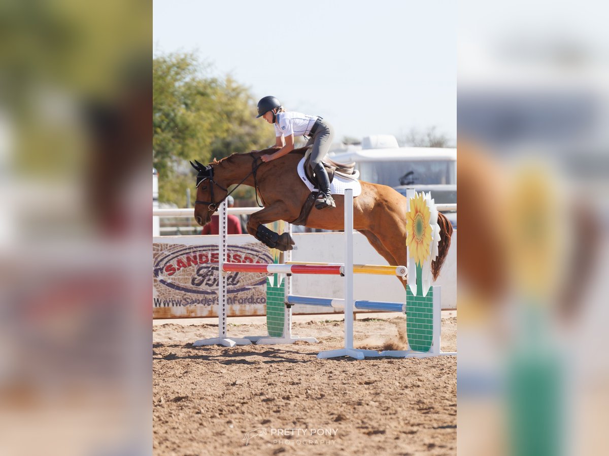 Looking for a quiet, kind, and very chill show jumper? Look no further! Q is suitable for an intermediate youth rider or beginner adult looking for a safe, honest partner. Q is uncomplicated to ride, calm in new environments, and a true barn favorite who always takes care of her rider!!! She is currently showing 2’9” or .80s. She has schooled up to a meter, with room to go higher. She has only shown in the show jumping ring, but she would 100% shine in the hunter ring as well! She’s been ridden western, moved cows, done pony rides, obstacle courses, and genuinely loves kids! She’s currently working toward a confirmed automatic lead change and making steady progress. Q also has a fun, food-motivated personality that keeps everyone laughing and makes her a joy to be around! She even knows how to give hugs! She is the perfect size, extremely gentle, learns fast, and can take a joke like no other horse I know! She is 100% sound, up to date on all care. Requires special front shoes due to prior shoeing, with no impact on performance whatsoever. PM me for more information on this gorgeous young mare 💙 Located in Waddell, Arizona :)