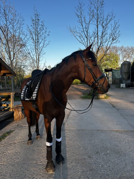 Hallo liebe Pferdefreunde :) Ich biete aus verschiedenen Gründen meine 6 jährige reinrassige Vollblutstute an. Sie ist 1,60 groß. Die Stute trägt vier Eisen, vorne aufgrund von Fühligkeit und hinten da wir des Öfteren mit Hufgeschwüren oder anderen Hufverletzungen zu kämpfen hatten. Seitdem die Eisen drauf sind keine weiteren Probleme gehabt. Beim Schmied sind mir mittlerweile gut mit Sedierpaste, da sie durch die ständigen Verletzungsgeschichten hinten angefangen hat, zu treten. Das Thema ist mittlerweile gut geregelt und wird täglich besser. Zähne haben wir Mitte September machen lassen, geimpft ist sie Tetanus und Influenza, Herpes haben wir aufgehört, da ich keine Turnier Ambitionen habe. Die Stute hat sämtliches Zubehör und einen Dressursattel mit sich, was gern mit ihr ausziehen würde. Das Pferd ist vielseitig einsetzbar, muss in alle Richtungen weiter ausgebildet werden, macht allerdings alles brav mit. Im Gelände ist die Stute allein und in der Gruppe geritten, allerdings muss man manches Mal mit ihr diskutieren, wo es lang gehen soll. Polly ist seit 2023 in meinem Besitz, wir hatten bis auf kleine Wehwehchen nie Probleme, sie hat ein paar Überbeine die aber nicht weiter stören. Sie ist sehr gut sozialisiert, kennt Landwirtschaftliche Maschinen sowie Fahrräder, Hunde, usw. verladen habe ich sie nur beim abholen, nach ein bisschen Überzeugung ist sie dann mit drauf und bei der Fahrt war sie auch ruhig. Polly hat mich in den zwei Jahren sehr glücklich gemacht, allerdings ist nach einem gemeinsamen Unfall, der nur mich verletzt hat, das Gefühl einfach nicht mehr das gleiche und ich möchte den Reitsport pausieren/aufgeben. Zum rumstehen ist die Pollymaus zu schade, ich denke man kann ganz viel aus ihr rausholen. Ich wünsche mir für sie einen schönen Stall an dem sie ganz viel in der Herde raus kommt. Und natürlich eine ganz liebe Person die sie mindestens genau so liebt wie ich. Du solltest nicht mehr als 65 Kilo wiegen.