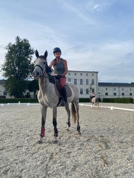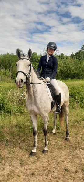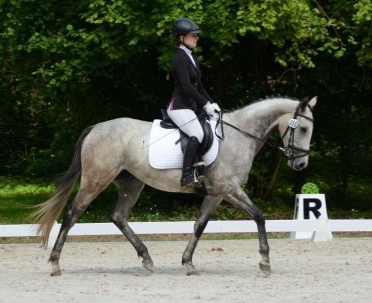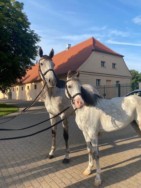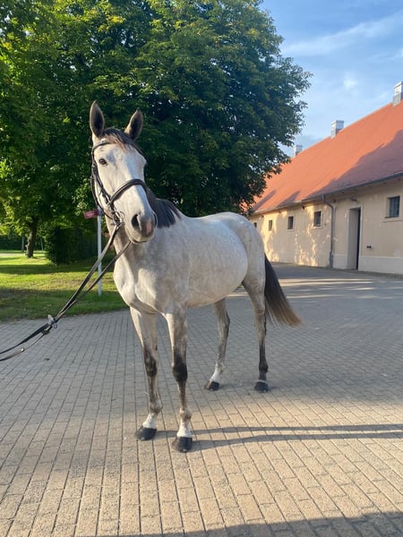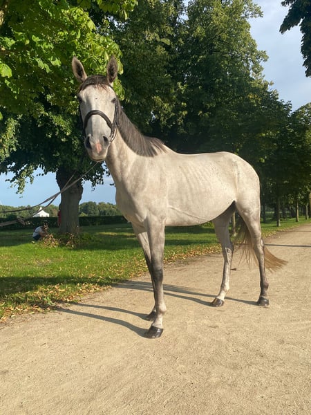 This exceptionally charming, beautiful, and performance-ready 6-year-old gray mare impresses not only with her appearance but also with her honesty, rideability, and versatility. Performance and Achievements: Competition experience with placements in Eventing Class E Show jumping A* Clear Round 1st place Dressage at L level placed in Poland, walk score 8 (unfortunately no official proof due to missing the 14-day deadline, but protocols, videos, etc. available) Character and Handling: Absolutely honest, uncomplicated, and easy to ride Very performance-oriented and reliable even in a competition environment Always friendly and composed in daily situations – a horse that impresses in every situation This mare is ideally suited for ambitious riders looking for a versatile and talented horse, whether for dressage, show jumping, or eventing.