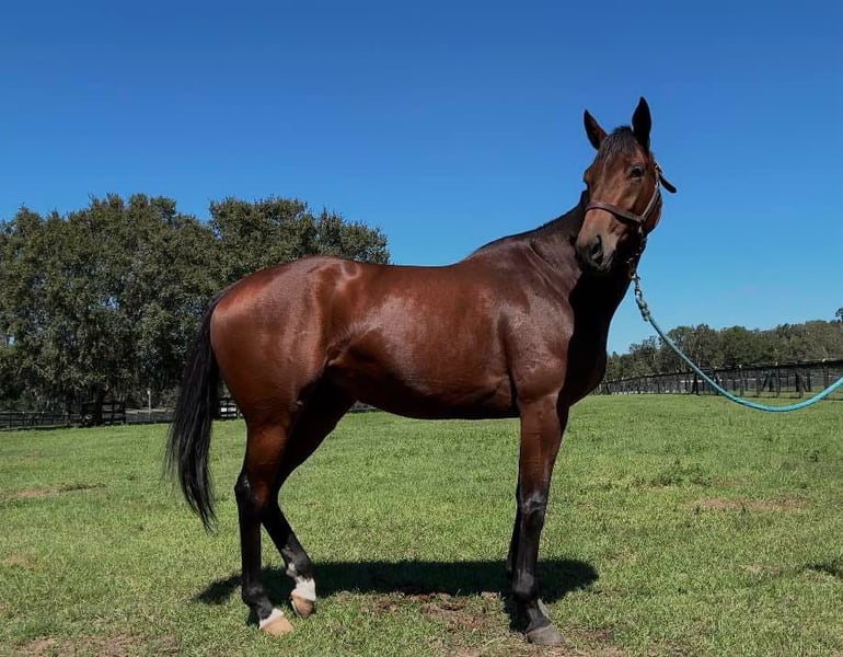 È così dolce, si fa fare ferrature. Si carica facilmente per ogni uscita. Sta migliorando di giorno in giorno. Le ho dato un po' di riposo dopo la pista, poi abbiamo iniziato a fare lavoro al passo e al trotto, sviluppando molta muscolatura e migliorando l'addestramento in sella. Camminiamo, proviamo il trotto e il galoppo in circolo, anche qui e là, e saltiamo qualche ostacolo. Questo cavallo sarà un fantastico hunter, eventer, e anche un ottimo cavallo da salto e dressage. Il nostro primo salto è stato un tronco. Se cerchi un progetto che voglia impegnarsi al massimo, questa potrebbe essere la scelta giusta. Scrivimi in caso di interesse. Grazie.