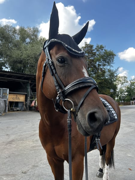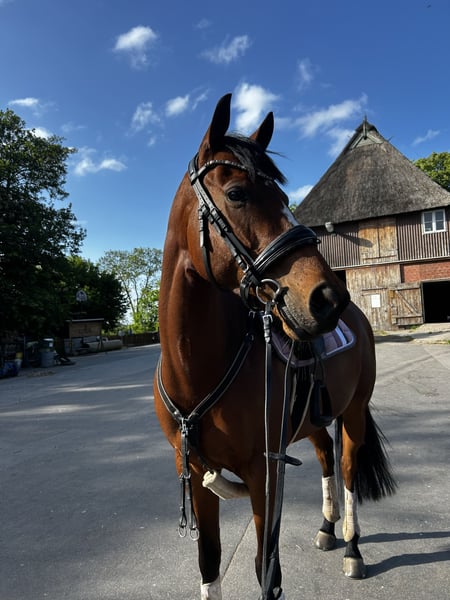 Hallo liebe Pferdefreunde :) Ich biete aus verschiedenen Gründen meine 6 jährige reinrassige Vollblutstute an. Sie ist 1,60 groß. Die Stute trägt vier Eisen, vorne aufgrund von Fühligkeit und hinten da wir des Öfteren mit Hufgeschwüren oder anderen Hufverletzungen zu kämpfen hatten. Seitdem die Eisen drauf sind keine weiteren Probleme gehabt. Beim Schmied sind mir mittlerweile gut mit Sedierpaste, da sie durch die ständigen Verletzungsgeschichten hinten angefangen hat, zu treten. Das Thema ist mittlerweile gut geregelt und wird täglich besser. Zähne haben wir Mitte September machen lassen, geimpft ist sie Tetanus und Influenza, Herpes haben wir aufgehört, da ich keine Turnier Ambitionen habe. Die Stute hat sämtliches Zubehör und einen Dressursattel mit sich, was gern mit ihr ausziehen würde. Das Pferd ist vielseitig einsetzbar, muss in alle Richtungen weiter ausgebildet werden, macht allerdings alles brav mit. Im Gelände ist die Stute allein und in der Gruppe geritten, allerdings muss man manches Mal mit ihr diskutieren, wo es lang gehen soll. Polly ist seit 2023 in meinem Besitz, wir hatten bis auf kleine Wehwehchen nie Probleme, sie hat ein paar Überbeine die aber nicht weiter stören. Sie ist sehr gut sozialisiert, kennt Landwirtschaftliche Maschinen sowie Fahrräder, Hunde, usw. verladen habe ich sie nur beim abholen, nach ein bisschen Überzeugung ist sie dann mit drauf und bei der Fahrt war sie auch ruhig. Polly hat mich in den zwei Jahren sehr glücklich gemacht, allerdings ist nach einem gemeinsamen Unfall, der nur mich verletzt hat, das Gefühl einfach nicht mehr das gleiche und ich möchte den Reitsport pausieren/aufgeben. Zum rumstehen ist die Pollymaus zu schade, ich denke man kann ganz viel aus ihr rausholen. Ich wünsche mir für sie einen schönen Stall an dem sie ganz viel in der Herde raus kommt. Und natürlich eine ganz liebe Person die sie mindestens genau so liebt wie ich. Du solltest nicht mehr als 65 Kilo wiegen.