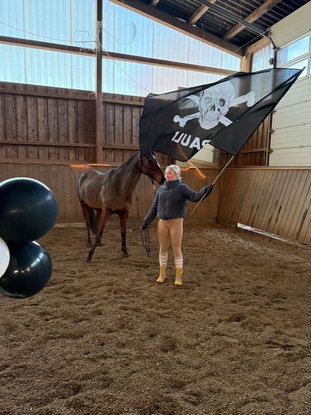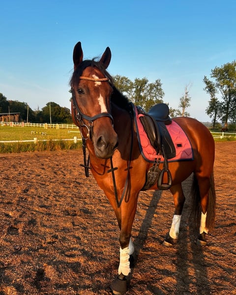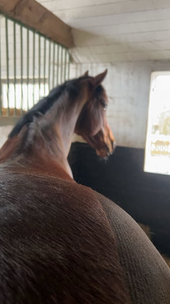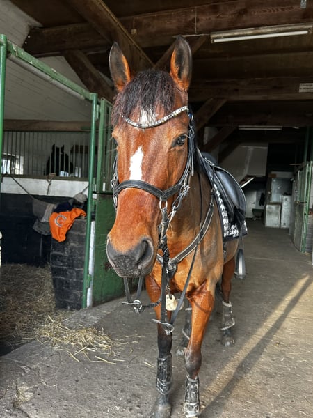 Hallo lieve paardenliefhebbers :) Ik bied mijn 6-jarige vollebloedmerrie, om verschillende redenen, te koop aan. Ze is 1,60 m hoog. De merrie draagt vier hoefijzers, aan de voorzijde vanwege gevoeligheid en aan de achterzijde omdat we regelmatig te maken hadden met hoefzweertjes of andere hoefverwondingen. Sinds de hoefijzers erop zitten, heb ik geen verdere problemen gehad. Bij de hoefsmid krijgt ze inmiddels goed sedatiepasta, omdat ze door de voortdurende verwondingen achteraan begon te trappen. Dit is inmiddels goed onder controle en wordt dagelijks beter. Haar tanden zijn midden september gecontroleerd, ze is gevaccineerd tegen tetanus en influenza; tegen herpes zijn we gestopt, omdat ik geen concoursambities heb. De merrie heeft alle toebehoren en een dressuurzadel bij zich, dat ze graag mee zou willen uitrijden. Het paard is veelzijdig inzetbaar, moet nog in alle richtingen verder opgeleid worden, maar doet alles braaf mee. In het terrein wordt ze zowel alleen als in een groep gereden, al moet je soms met haar bespreken waar ze precies heen wil. Polly is sinds 2023 in mijn bezit. We hadden, afgezien van kleine kwaaltjes, nooit problemen; ze heeft een paar bulten, maar die storen niet. Ze is zeer goed gesocialiseerd, kent landbouwmachines, fietsen, honden, enzovoort. Ik heb haar alleen geladen bij het ophalen; na wat overtuiging ging dat prima, en tijdens de rit was ze rustig. Polly heeft me de afgelopen twee jaar veel plezier gedaan, maar na een gezamenlijk ongeluk dat alleen mij verwondde, voelt het niet meer hetzelfde en ik wil de paardensport even pauzeren of stoppen. Het is zonde om haar te laten stil staan, ik denk dat er heel veel uit haar te halen is. Ik wens haar een mooie stal waar ze lekker in de kudde kan grazen. En natuurlijk een heel lief persoon die haar minstens zo veel liefheeft als ik. Je mag niet meer dan 65 kilo wegen.