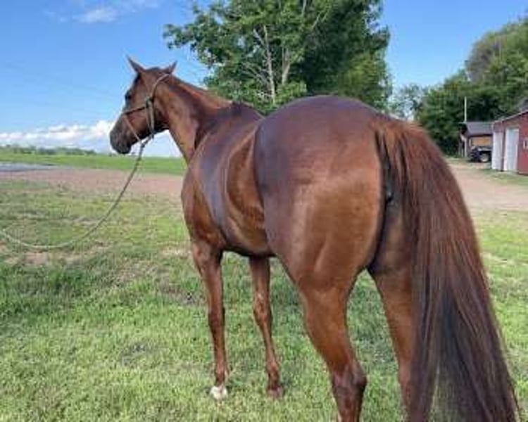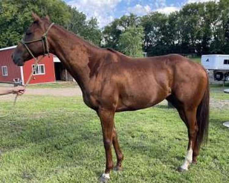 Meravigliosa mare OTTB di 7 anni. È tranquilla, equilibrata e una velocissima apprendista. Fa praticamente tutto ciò che le si chiede. Ha corso su pista e ha vinto un LTE di 40.000. È aggiornata con le vaccinazioni e il test Coggins. Purtroppo non ho abbastanza tempo per dedicarle e farla lavorare come si deve, per completarla e renderla competitiva. Facile da ferrare e da mettere in tiro, adora il bagno ed è facile da gestire.