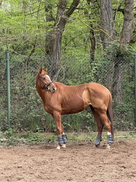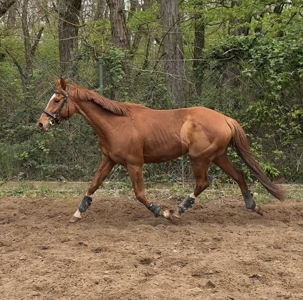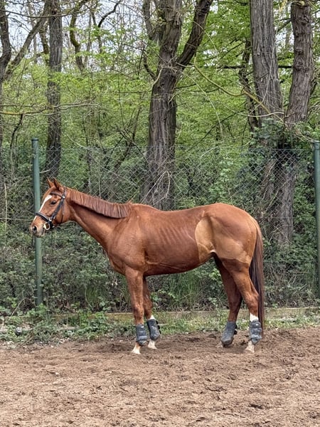 I am offering my 8-year-old, 165 cm tall Thoroughbred mare, Shiva, for sale. She will turn 9 in May. Last year, I took over Shiva in very poor condition, but since then, quite a bit has been done. We have managed to improve her hooves as much as possible without shoes, had her teeth checked and treated, and she receives regular osteopathic care. We’ve also learned a lot together. I originally bought Shiva from a breeder, and she was lightly backed shortly after. At that time, she only knew riders from the racetrack. Shiva has already foaled twice and is registered with the Trakehner Verband. After nearly a year and three months in my possession, I unfortunately realized that Shiva and I are not the perfect match. She is directly descended from Lord of England, and you can feel that 🙂. Her offspring are known for their strong character, and she definitely fits that description. She has a big heart but can sometimes be her own worst enemy emotionally. Shiva is shoe and loading familiar. She knows the terrain, indoor arena, and outdoor paddock. Last year, I jumped her in some A*-** star courses, but she tends to get excited when jumping, which can be difficult to manage. Therefore, I am hesitant to sell her as a jumping horse. I could see Shiva thriving with an endurance rider, trail rider, or even in hunting. She might also suit a dressage rider! She is very well-trained and has a lot of go, so she needs a calm rider. For a classic Thoroughbred, she moves very nicely and has an active hind end. She has always been very manageable and fearless away from home. However, Shiva needs a place to stay overnight, as she has become quite anxious in her open stable. We are currently working on improving this. I have never had her x-rayed or scanned, as she has never shown any issues under my care. Shiva has 1-2 minor “flaws,” which I am happy to discuss with serious interest. I will only sell Shiva to someone who has visited her 2-3 times for a trial ride. I want an honest conversation so that both parties can assess if she is the right fit. The trial ride fee is €30, which will be refunded upon purchase. Price is negotiable. Absolutely, priority goes to the well-being of the horse!