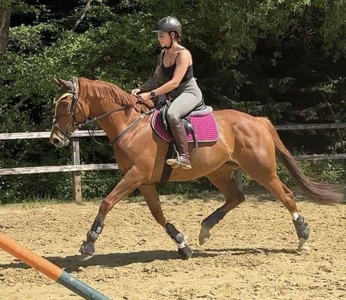 Je mets en vente ma jument Selle français de 8 ans, qui aura 9 ans en mai, mesurant 1,65 m. J'ai repris Shiva l'année dernière dans un très mauvais état, et depuis, beaucoup de choses ont été faites. Nous avons travaillé sur ses sabots, sans ferrure autant que possible, fait faire ses dents, bénéficié de traitements ostéopathiques réguliers, et appris énormément. Je l'ai achetée chez un éleveur et l'ai doucement mise en selle peu après (elle connaissait à l'époque uniquement la compétition de course). Shiva a déjà eu deux poulains et est inscrite au Verband der Trakehner. Après près d’un an et trois mois en ma possession, j’ai malheureusement dû constater que Shiva et moi ne sommes pas le « match parfait ». Elle descend directement de Lord of England, ce qui se ressent 🙂. Ses descendants sont réputés pour leur caractère très affirmé, et elle n’est pas une exception. Elle a un cœur en or, mais peut parfois se laisser gêner par ses nerfs. Elle est ferrée et sait charger en van. Elle connaît le terrain, la carrière intérieure et la paddock. L’année dernière, je l’ai même sautée en parcours étoilé (A* étoiles), mais elle devient très chaude lors des sauts, ce qui peut être difficile à gérer, c’est pourquoi je préfère ne pas la proposer comme cheval de saut. Je peux l’imaginer chez un randonneur, un cavalier de distance ou même en chasse. Peut-être aussi pour un cavalier de dressage ! Elle est extrêmement bien montée, mais elle a aussi beaucoup d’énergie et a besoin d’un cavalier calme. Pour un pur-sang, elle offre de très belles allures et une arrière-main active. En extérieur, elle a toujours été très facile à gérer et n’a pas peur. Cependant, Shiva a besoin d’un endroit pour dormir la nuit, car elle a malheureusement beaucoup perdu en box en paddock ouvert, ce que nous avons actuellement repris en main. Je n’ai jamais fait de radiographies ou de Tüv, car elle n’a jamais eu de problème chez moi. Shiva présente 1-2 petits « défauts » qui pourront être communiqués en cas d’intérêt sérieux. Je la confie uniquement à une personne qui est venue 2 ou 3 fois la voir pour un essai, afin de permettre une discussion honnête et pour que le futur propriétaire puisse évaluer si le cheval lui correspond. Pour un essai, je facture 30 €, qui seront remboursés en cas d’adoption. Le lieu prime sur le prix ! Le prix est négociable.
