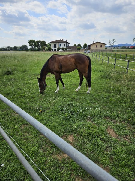 Cavallo per cavaliere esperto, saltatore adatto per le cacce alla volpe. Ex ostacolista da pista.