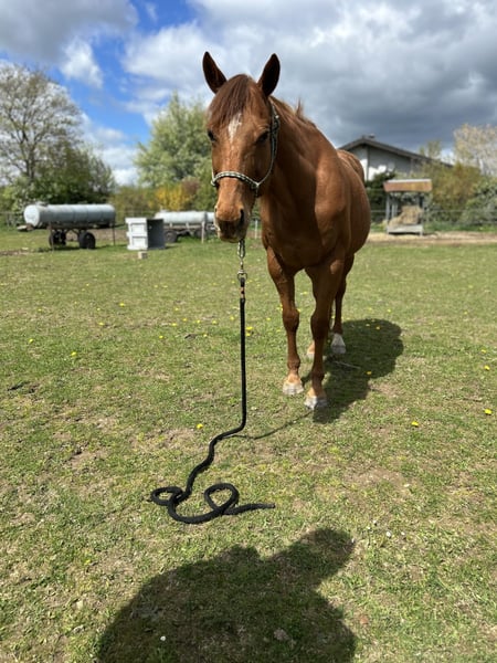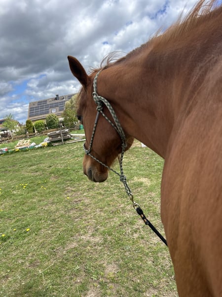 We are downsizing our herd and are therefore saying goodbye to some truly lovely horses. In this listing, I would like to introduce you to Big Red. We acquired him as a companion for another gelding. We know that he was previously taken out of training due to a laminitis (racehorse), and in his new home, he has been worked extensively from the ground. Clicker training is very familiar to him. At his old stable, he was also ridden in the indoor arena by experienced riders, but I cannot guarantee this. I am selling him solely as a companion horse. His character is very polite and respectful. He is dominant but fair. He can also stay alone for quite a while.