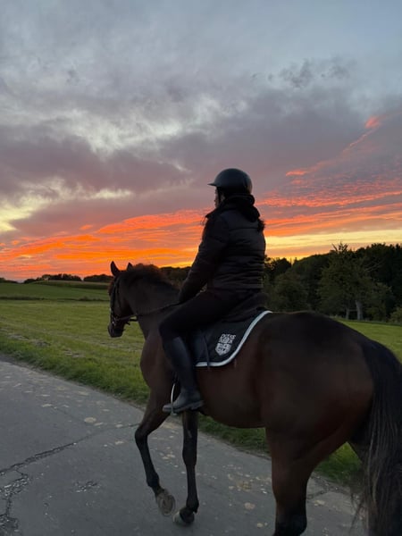 Zum Verkauf steht ein wunderschöner 10-jähriger Vollblut-Wallach mit einem Stockmaß von ca. 1,68 m. Er wird aktuell als Freizeitpferd genutzt und zeigt sich dabei stets zuverlässig, entspannt und freundlich. Sein Charakter ist absolut liebenswert: Er ist ruhig, gelassen und lässt sich problemlos auch von Kindern im Umgang handeln. Ebenso ist er unerschrocken gegenüber Tieren und Verkehrsmitteln und zeigt sich in jeder Situation als angenehmer Partner. In der Herde ist er rangniedrig und sehr sozial, weshalb er problemlos mit anderen Pferden zusammenlebt. Er ist komplett gesund, hat keine bekannten Einschränkungen und geht regelmäßig zum Schmied und Tierarzt, alles ohne Schwierigkeiten. Für die Haltung ist wichtig zu erwähnen, dass er nicht für den Offenstall geeignet ist. Eine Box mit täglichem Weidegang oder Paddock ist für ihn ideal. Er wird schweren Herzens verkauft, da wir leider feststellen mussten, dass wir als Team nicht optimal harmonieren und ich ihn mir nicht im Turniersport vorstellen kann. Für jemanden, der einen zuverlässigen und gutmütigen Freizeitpartner sucht, ist er jedoch ein echtes Traum-Pferd und er hat es verdient, seinen passenden Menschen zu finden. Sattel, Trense und weiteres Zubehör können bei Interesse gerne mit erworben werden.
