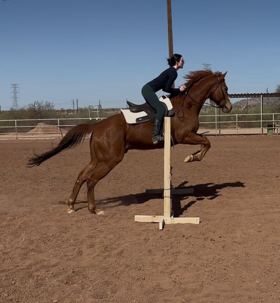 Mac is a big guy with a big heart to go with him I’ve had him for 4 years, he is as honest as they come and will try to do anything you ask him to. He’s done a little bit of everything but I haven’t finished him in anything. I’ve done barrels, jumping, trails, flags, swung a rope off of him and done a couple obstacles such as a teeter totter, water mote, over pallets etc. He trailers great, gets along with other horses, he’s barefoot (had shoes on the track) and stands good for the farrier. He’s not spooked by traffic or loud vehicles, not much spooks him as he’s a pretty laid back guy. But since he is a thoroughbred he has a lot of speed to him. His favorite thing is to run and loves breezing every now and then. He’s respectful on ground and in the saddle and loves the affection from my lessons kids.