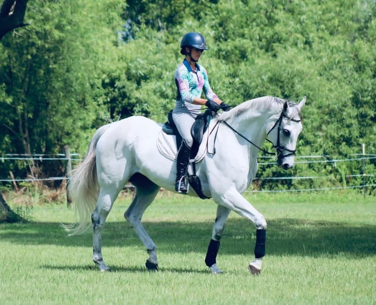 „It’s a Given“ ist ein 16,2 hh großer, 13-jähriger Vollblutaraber-Gelding. Given hat bereits Vielseitiges erlebt und könnte in jede Richtung weiterentwickelt werden. Er hat bereits die erste Stufe im Dressurtraining bei Turnieren gezeigt, ist Geländesprünge gewöhnt und war auf vielen Ausritten außerhalb des Hofes unterwegs. Im Gelände ist er angenehm zu reiten, sehr weich im Maul mit komfortablen Gängen. Er zeigt eine fliegende Galoppwechsel, benötigt jedoch noch mehr Ausbildung, um daraus einen Dressurwechsel zu machen. Er liebt Springen und hat viel Sprungkraft, braucht aber eine selbstbewusste Person, die seine Ausbildung über die Hindernisse weiterführt. Given ist ideal für eine engagierte Amateurreiterin oder einen mutigen jungen Reiter, der ein strukturiertes Programm schätzt. Er könnte problemlos im Dressur, Vielseitigkeit oder Springen eingesetzt werden.