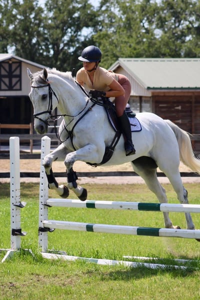 “It’s a Given” is a 16.2h, 13 year old, tb gelding. Given has done a little bit of everything and could continue in any direction. Has show 1st level at dressage schooling shows, xc schooled and been on many off property adventures. A fun one on the flat, very soft in the mouth with comfortable gaits. Has a lead change but needs more schooling to turn it into a dressage change. Enjoys jumping and has plenty of scope but needs someone confident to help continue his education over fences. Given would be best suited for an AA or gritty young rider who enjoys having a program with structure. He could easily do straight dressage, eventing or jumpers.
