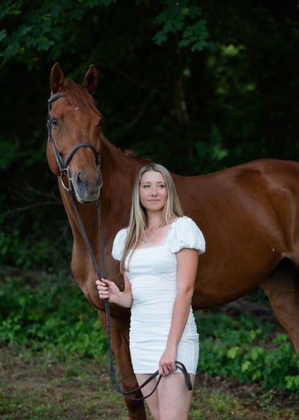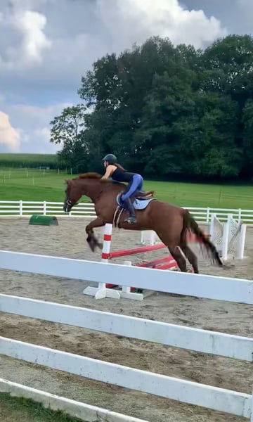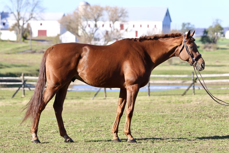 ⚜️ 𝓽𝓱𝓮 𝐇𝐨𝐫𝐬𝐞𝐦𝐚𝐧'𝐬 𝓢𝓱𝓸𝔀𝓬𝓪𝓼𝓮⚜️ Happening now thru MONDAY | DECEMBER 1st - Available EXCLUSIVELY on HorseBid's website! For more details and to register visit: www.Horsebid.com CONSIGNOR CONTACT: CM Farms 717-875-2061 LOCATION: Gap, PA BREED: TB REGISTERED: No COLOR: Chestnut HEIGHT: 16.3 AGE: 15 GENDER: Gelding Meet 💎”Diamond in the Rough”💎 (aka Frankie)! This stunning boy is a 15-year-old, 16.3-hand, TB, gelding. With legs for days, a bright, shiny coat, and his fun personality, he’s hard to miss! Not only is Frankie eye-catching, he’s also loaded with talent and experience. He’s had the same owner for the past six years and has received five-star care. He’s successfully shown in the hunters through 2'6", schooled up to 3' with scope for higher, has an auto lead change, and has also dabbled in dressage and cross-country. Here’s one that could easily do three-day eventing and clean up. Don’t let his age fool you—Frankie has lots of life to give and can't wait for his next adventure! In the ring, Frankie is a straightforward, educated ride and a fun one at that! He’s slow and easy on the flat—more on the push ride side—but not one you constantly have to push. He has a lovely headset, goes on the bit, and carries himself nicely. He knows leg yields, shoulder-ins, and turns on the haunches. This guy has great balance in both directions and has auto changes both ways; he will even naturally swap after a jump if he’s not on the correct lead. He would shine in a dressage arena and be your next favorite ride! Over jumps he has his own little motor and has fun doing it! His ears perk forward, and he will jump from anywhere. He has zero stops, run-outs, and no mean or naughty behavior. He’s very controllable, adjustable, and will take care of you if you put him in a bad spot. He has cute form, a good attitude, and a floaty step. He’s comfy to sit to the trot, and his canter is like floating on air. He can be a typical TB and test you with a spook, however, it’s a very rideable spook; it’s always just in place. He’s not one to pull anything dirty or bolt. As long as he has a confident rider to laugh and push him forward, he immediately comes back to you and gets to work. Off property he is a gem; he settles right in and, if possible, even behaves better! It’s like he knows there are people watching him and he likes to show off. It's a blast to take him cross-country—he’s one you can jump around and then walk on a loose rein right after. He has so much talent, and you don’t find ones like him often. Frankie has been through our desensitization program, and some would argue he was the easiest TB we’ve ever had! He has a curious personality and likes mental stimulation. He plays with the ball, he’s walked through smoke, he is completely tarp-safe (you can even put it over his head, lol)—and the most he might do is taste-test new things. He’s traffic- and equipment-safe and safe to take out on the trail! He likes to go out, he hops right on the trailer and loves seeing new places. He will lead or follow in a group and doesn’t mind if another horse rides too close. He loves his buds and gets along with everyone without being overly attached. He’s a fun horse, ready to go out and do his job—the hard work’s already been done! In the barn, Frankie has enough personality for three horses. He loves to be groomed and is an in-your-pocket type—so much so he sometimes needs reminded of personal space and not to be too mouthy. This ham is an absolute riot—he’ll share a drink or snack with you and makes all the funny faces! He’s easy to tack up and handle, and he’s well-behaved for the farrier, vet, and dentist. He has been turned out in green pastures and dry lots. He respects a fence, has zero bad stall habits, and is overall a lovely, safe horse to have around. Frankie has had minor maintenance suitable to his age and has zero limitations! His owner has only decided to move him along due to a lack of time for him—and this guy is too nice to sit on the back burner! If you want educated and fun, one that has miles in every direction, and one that has all the skill to be your fancy new show horse—Frankie is your guy.