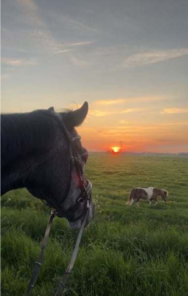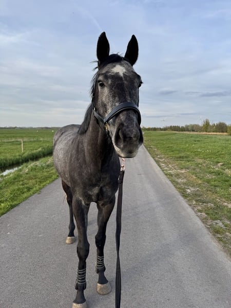 Met genuine pijn in mijn hart maakt ik deze advententie aan en bied ik mijn liefste Henry te koop of fulltime lease. Henry is een Engels Volbloed ruin van 157 cm hoog en 4 jaar oud, maar dat zou je niet verwachten als je hem in het echt ziet. Henry is bijna een jaar bij mij geweest, en heeft in deze periode heel veel (geestelijk) gegroeid. Hij kwam als zadelmak, en wij zijn samen op avonduur geweest met het resultaat dat hij ingereden is, en alle basis vaardigheden als rijpaard heeft. Helaas is het zo dat de verder hij in zijn opleiding komt, de duidelijker wordt het dat wij tijdens het rijden helaas geen klik hebben - wat natuurlijk ontzettend veel pijn doet want hij is oprecht een schat van een paard. Na een langere tijd overnadenken heb ik toch tot de conclusie gekomen dat hij een andere baasje verdient die wel deze klik met hem heeft. Henry is ontzettend braaf tijdens het borstelen, vraagt altijd veel aandacht en is ook lekker speels. Een beetje karakter heeft hij ook - hij kan soms wel eigenwijs zijn, net zoals de peuter die hij natuurlijk is. Toch heeft hij heel veel geduld, en laat alles toe: dierenarts, hoefsmid, zadelmaker - niets is een probleem voor Henry. Wij krijgen uiteraard altijd feedback dat hij ontzettend lief is! Het rijden gaat heel goed, hij doet altijd zijn beste en leert heel snel. In dressuur kan hij de basis, en heeft nu zo een balans en tempo dat het nageven ook begint te komen tijdens het rijden. Wij hebben het rustig aan gedaan met het focus op dat het leuk moet blijven liever dan dat hij netjes moet lopen. In de bak is hij liever wat trager dan te snel. Op buitenrit is hij ook ontzettend braaf en bomproef. Hij schrikt niet, kan ook voorop lopen en zelfs als een ander paard vandoor gaat blijft het mogelijk om hem terug te houden en heeft hij altijd een rem. Ook kan hij ook heel hard gaan als je dat wilt! Toen Henry twee jaar oud was heeft hij helaas in zijn ene achterbeen een peesblessure gehad. De vorige eigenaresse heeft hem alle de tijd gegeven om dit te laten genezen voor dat hij zadelmak werd gemaakt. Hij heeft er verder geen last van. Zijn hoeven zijn ook een beetje gevoelig, dus op advies van hoefsmid hebben wij hem op ijzers voor laten staan. Verder kunnen zijn hoeven het wel prima aan, alleen Henry vindt het minder prettig. Hij is verder helemaal gezond. Keuring is nog nooit gedaan, en mag natuurlijk wel bij serieus interesse (k.k). Hij zou in een kudde kunnen staan (hij is wel een underdog, dus moet een goed gebalanceerd kudde zijn), en kan ook op gras staan. Ik bied hem met alle toebehoren aan, en dus ook het zadel. Een goed huis is voor mij wel belangrijker dan de prijs, en is daarom voor het juiste huis onderhandelbaar. Denk je dat je een goed huis zou kunnen aanbieden? Dan zie ik graag een bericht waar je jezelf voorstelt, wat je kan bieden en je ervaring met paarden.