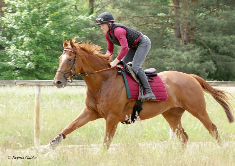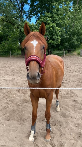 Mo is an absolute dream horse. If I had the time, I would definitely keep him myself. But he deserves a life where he plays the leading role. He ran one race for me and sustained a tendon injury. That was in June. Since then, he has been healing in the pasture with 5 other horses. He has been sound for many weeks now and can be used without hesitation as a leisure horse. He will also be able to do some light jumping, just no high-performance sports anymore. I taught him the basics of a "normal riding horse" when he was just 3 years old. Side passing, collection, backing up, and going forward and downward in self-carriage are second nature to him. I am looking for a lifelong home for him, as he needs a person to bond with and someone who loves him. I will really miss his whinnying every morning. He would go through fire for HIS person and is truly very trainable and eager to learn; he is still a teenager at just 4 years old.