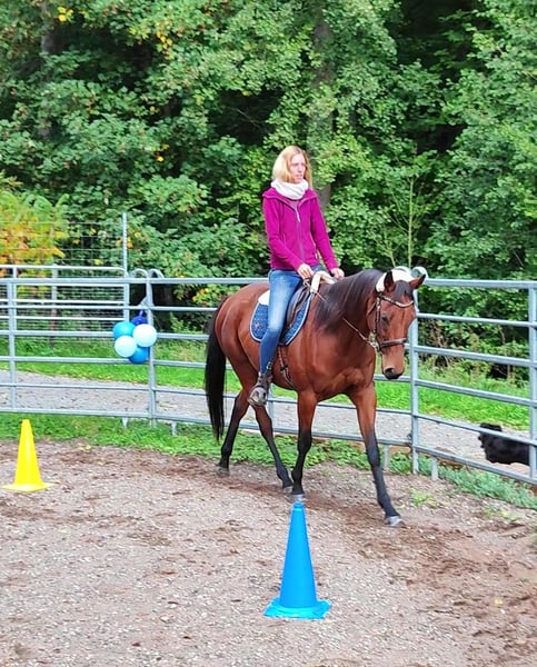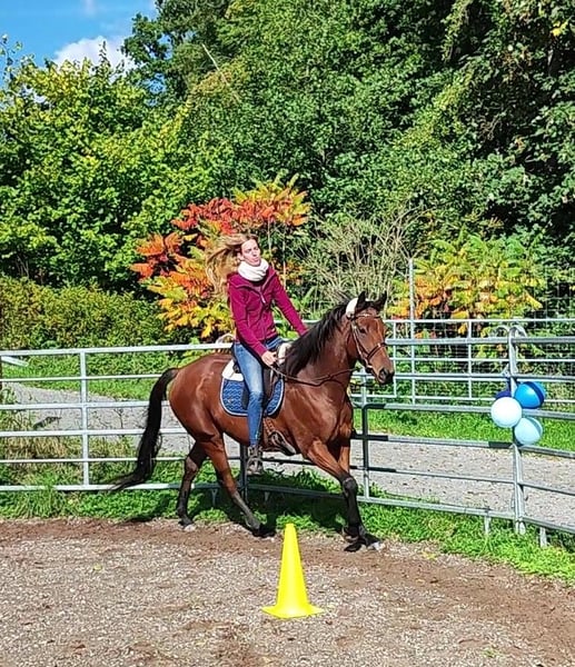 Foxred - Vielseitiges Reitpferd mit großer Perspektive! 6-jähriger, 165cm großer, brauner Vollblut Wallach mit moderner Abstammung V: ANJAAL, M: AMARY. Fox beeindruckt auf Anhieb. Im Umgang sehr kopfklar und unkompliziert, unerschrocken und dem Menschen zugewandt, begeistert er unter dem Sattel durch Zuverlässigkeit, angenehme Bewegungsfreude und genügend Sensibilität für das große Viereck oder die Arbeit mit Kindern/Jugendlichen. Er ist Arbeitswillig und beeindruckt immer wieder mit seinem menschenbezogenen Wesen. Er lässt sich toll alleine Arbeiten, braucht keine Sicherheit durch andere Pferde und kommt in einer neuen Umgebung sehr schnell an. Ideal für Auswärtstraining, Turniere oder Wanderritte. Er begeistert mit seiner inneren Ruhe und einem einwandfreien Charakter. Seine drei sehr guten Grundgangarten lassen sich bequem sitzen und bieten viel Potential für mehr Vorhandaktion und Raumgriff. Seine Anlehnung ist fein und macht dem Reiter Freude beim Abrufen der gelernten Lektionen. Fox liebt auch das Gelände und ist hier ein zuverlässiger Partner, ob in Begleitung oder bei einem Ausritt alleine! Ein Reitpferd für vielseitige Ansprüche! Bestens geeignet für Anfänger, Jugendliche, erfahrene Reiter und zur weiteren Ausbildung im Bereich Dressur, Springen oder Gelände! REITVIDEOS und VIDEOS vom Freilauf gerne über Whats app ✔️ Eine Ankaufsuntersuchung kann gerne im gewünschten Umfang in Auftrag gegeben werden ✔️ Kennenlernen, Probereiten, Transport ins neue Zuhause,... nach vorheriger Absprache und gegen Übernahme der Kosten gerne möglich ✔️ Fox ist bestens sozialisiert, schmiede- und verladefromm, barhuf und wird nur in eine artgerechte Haltung mit ganzjähriger, zugänglicher Weide abgeben. Er ist Aufsetzkopper und benötigt u.a. deshalb große Weideflächen (in Hektargröße) um gesund und glücklich zu sein. Nur wegen dieser Besonderheit ist dieser tolle Wallach so günstig zu haben! Weitere Infos gern unter 01778787640
