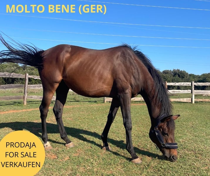 The 2019-born German gelding Molto Bene comes from a proven sport and racing lineage tracing back to the legendary Nearco (ITA, 1935), the sire of nearly all modern Thoroughbreds. His sire, Intendant (GER, 2001), is a son of the renowned Acatenango, a multiple champion and one of Germany’s most successful stallions, known for his strength and stamina. His dam, Manja (GER, 2004), is a descendant of Zinaad (GB), a son of Mill Reef, the legendary English Derby winner of 1971, celebrated for his elegance and beautiful movements — qualities that Molto Bene also demonstrates under saddle. Gender: Gelding Color: Dark Brown Height: 16.1 hh He hails from a top bloodline with proven sport success, is harmoniously built, has elegant movements, and is robust and enduring. Examined by a veterinarian and classified as a healthy and beautiful example of his breed, he is ready for a new owner with a serious commitment to sport.