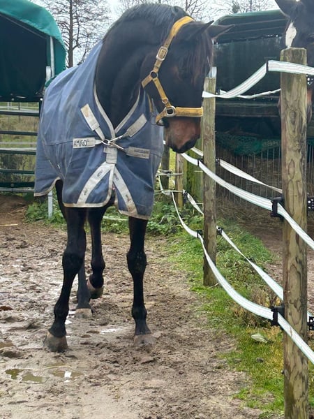 English Thoroughbred Gelding for Sale For sale is a stunning dark bay English Thoroughbred gelding, born in 2018. He stands approximately 16.1 hh. The horse is ideal for leisure riding. He has kissing spines, and I am too heavy for him, so I am looking for a new, suitable home. Please feel free to contact me for more information or if you are interested. Viewing and trial rides are available by appointment.