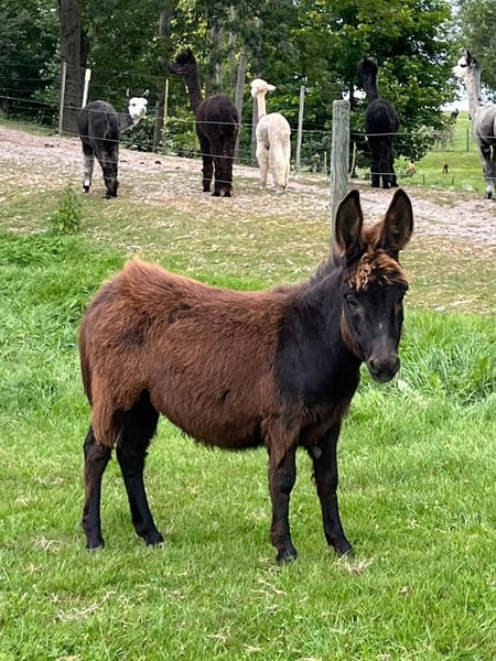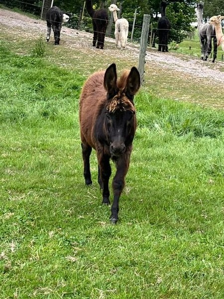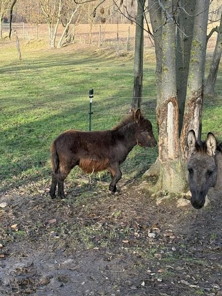 Verkaufe jungen Esel-Hengst – ideal für die Freizeitgestaltung! Wir bieten einen Mini Esel-Hengst, geboren im Jahr 2025, in dcer seltenen Farbe schwarz zum Verkauf an. Der schwarzbraune Nachwuchs überzeugt durch sein freundliches Wesen und sein charmantes Erscheinungsbild. Mit einem Stockmaß von ca. 75 cm ist er perfekt für den Einsatz in der Freizeit geeignet. Der kleine Hengst ist neugierig und verspielt . Er eignet sich für Familien, Einsteiger oder als Begleiter für Spaziergänge. Seine robuste Natur und sein angenehmer Charakter machen ihn zu einem zuverlässigen Partner. Leider müssen wir ihn abgeben da wir nur noch zwei trächtige Stuten haben und er somit alleine stehen müsste . Platz vor Preis :) Bei Interesse freuen wir uns auf Ihre Kontaktaufnahme!