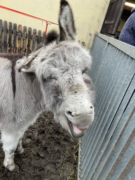 Pferdinand ist ein relativ kleiner Esel Hengst mit einem Stockmaß von ca. 1 Meter und ist am 05.10.2022 in unserem Tiergehege geboren. Das bedeutet er kennt den Umgang mit anderen Artgenossen sowie alltägliche Einflüsse wie täglichen Kontakt mit verschiedenen Personen, Kinder am Zaun, er lässt sich anfassen und putzen und kennt auch schon den Tierarzt. Da es in unserer Eselherde bereits einen Leithengst gibt, musste er eine Zeit lang getrennt stehen, um Auseinandersetzungen, Verletzungen oder Schlimmeres zu vermeiden. Diese Entscheidung fiel uns nicht leicht, war aber zu seinem Schutz notwendig. Durch die zeitweise Einzelhaltung ist er aktuell sehr aufmerksam und manchmal etwas überdreht, wenn Besuch kommt. Er freut sich über jede Form von Aufmerksamkeit und überschätzt sich dabei gelegentlich selbst. Mit klarer, ruhiger Führung und konsequenter Haltung wird er sich jedoch weiter gut entwickeln. Er sucht ein Zuhause bei erfahrenen Eselhaltern, die ihm Sicherheit, Geduld und artgerechten Kontakt zu passenden Artgenossen bieten können. Mit der richtigen Führung wird er sich zu einem tollen, charakterstarken Begleiter entwickeln. Bei ernsthaftem Interesse freuen wir uns über eine Nachricht und erzählen gerne mehr über ihn! Preis verhandelbar!