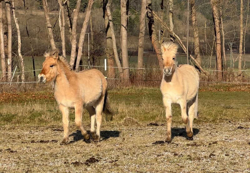 Aus unser Zucht ist noch ein Hengstfohlen abzugeben. Name: Bacardi Geb.: 10.05.2025 Endm.: 146cm Mutter: Elite StPrStute Hjelka( V: Elite Helge MV:Havaard) Vater: BPrH Bram (V: Cobus MV: PrH Leengard) Prämierung: Fohlenprämie Bacardi ist ein freundlicher junger Mann, der Rücksichtsvoll, liebenswert und offen allen neuen gegenüber ist. Er ist E Zaun sicher, kennt Anhänger fahren und den Alltagstrubel auf einem Pferdehof. Bacardi steht momentan mit einem weiteren gleichaltrigen Fjordhengst sowie einem gekörten Junghengst zusammen im Offenstall. Er sucht den Kontakt zu seinen Artgenossen, geht Streit aus dem Weg ist aber kein Schüchternes Pferd. Er wird regelmäßig entwurmt und wurde auch schon vom Schmied ausgeschnitten. Gerne kann Sie nach Absprache besichtigt werden. 0172 8403593