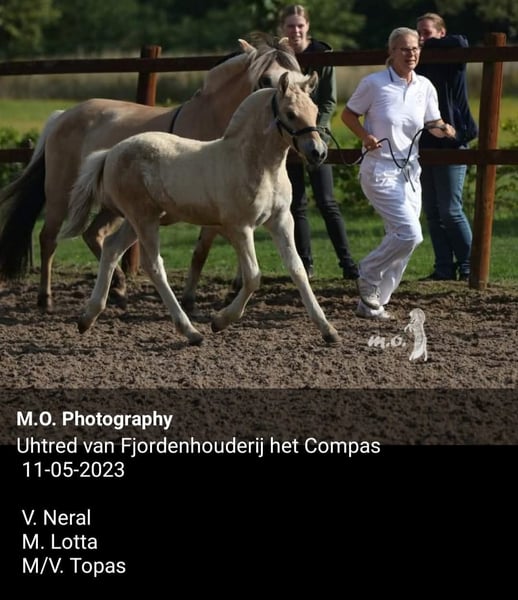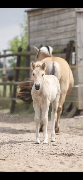 Beautiful red dun colt foal for sale.Well-behaved and driven foal. Beautifully marked with zebra stripes on all four legs. From a highly proven bloodline. Wiltred van Fjordenhouderij Het Compas is a son of the beautiful approved stallion Neral, who has just been sold to Australia. He is also a grandson of Gio. A full brother to this foal is Uhtred van Fjordenhouderij Het Compas, who was sold to France in 2023 with the intention of being used for breeding. We also bred a colt from this stallion in 2023: Uhral van Fjordenhouderij Het Compas. This colt has also been sold and is in England with the same purpose. A wonderful addition to the breeding program. The dam is by the proven stallion Topas (dam's sire Zortin). A truly beautiful, old bloodline. We are unable to keep stallions ourselves. We're offering this beautiful, correct, Rodblakk for the right home. We'd love to keep him intact, with the goal of making him a valuable addition to our breeding program. If you have any questions, please contact us.