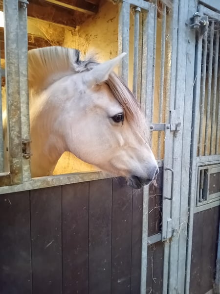 Irina vom Stal Valentin ist im Belgischen Fjordpferd-Studbook eingetragen. Geburtsdatum: 08.05.2007 Vater: Kolliståen Mutter: Britny Irina ist tragend vom jungen, gut geprüften Hengst Teiglands Odel (siehe Hengstefiche und Ultraschallbild zwischen den Fotos). Die Geburt wird für Mitte Juli erwartet. Irina wurde in Belgien dreimal zur nationalen Meisterin gekürt. Sie ist regelmäßig entwurmt, gechippt und geimpft. Regelmäßig besucht sie den Hufschmied und läuft derzeit barfuß. Irina hat ein zuverlässiges und sanftes Wesen. Sie kann stundenlang stillstehen, um verwöhnt zu werden – sogar von den Kleinsten. Mit zwei Reitern auf dem Rücken, bei Schreckparcours ... nichts ist ihr zu viel. Sie genießt auch Ausritte im Gelände, allein oder in der Gruppe. Hier wird sie sowohl von Kindern als auch von Erwachsenen geritten. Zudem ist Irina gut verkehrssicher. Irina steht bei uns 24/7 draußen und verfügt über einen Laufstall. Sie geht problemlos in den Anhänger und ist beim Transport ruhig. Sie ist brav beim Tierarzt und Hufschmied. Unsere Tochter wechselt zu einem Springpony, und leider haben wir weder Zeit noch Platz, um mehrere Pferde zu halten.