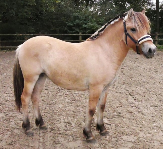 Imię: Vyarny Van`t Gors Płeć: Klacz Wiek: ur. 26.04.2024 Wzrost: 138 cm Rasa: Norweg Rodowód: Lyckängs Tempo x Havik von Haavard Przepiękna, dobrze rozwinięta klacz roczna z dobrymi ruchami. Obecnie żyje w stadzie z 3 innymi klaczami fjordzkimi. Vyarny jest zdrowa i odporna, może również zamieszkać w boksie otwartym. W przypadku zainteresowania prosimy o kontakt pod numerem 0176 62495567.