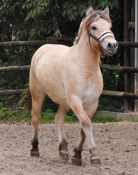 Name: Vyarny Van’t Gors Gender: Mare Date of Birth: April 26, 2024 Height: 13.8 hh (138 cm) Breed: Norwegian Fjord Pedigree: Lyckängs Tempo x Havik von Haavard Beautiful, well-grown yearling mare with good conformation. She currently lives in a herd with three other Fjord mares. Vyarny is healthy and robust; she could also be kept in an open stable. Please feel free to contact us at +49 176 62495567 if you are interested.