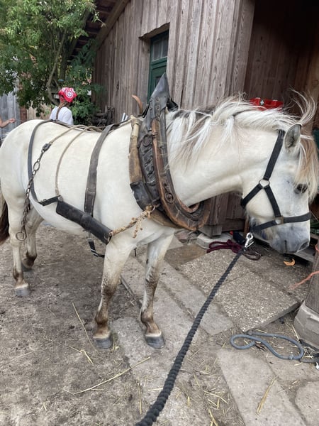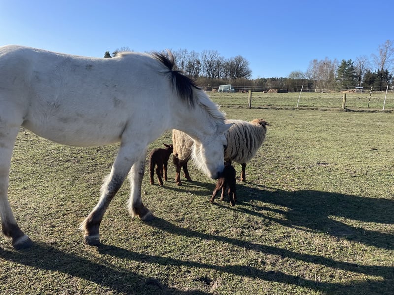 Sprzedajemy naszą własnoręcznie wyhodowaną, białą klacz Fjord. Inskar urodziła się i dorastała na naszym gospodarstwie w kwietniu 2022 roku, wśród dzieci, traktorów, psów i codziennego zamieszania na farmie. Jest przyzwyczajona do spacerów, jazdy w terenie jako koń towarzyszący, pracy na lonży, siodła i uprzęży, i jest przy tym bardzo spokojna. Jest bardzo przywiązana do ludzi, lubi się głaskać, a jej charakter cechuje otwartość, ciekawość i odwaga. Zdobyła pierwsze miejsce na pokazie młodych koni, posiada pełną dokumentację, a jej matka jest dostępna na miejscu. Obecnie jej wzrost wynosi około 143 cm. Sprzedajemy ją jako klacz hodowlaną, ponieważ w 2024 roku z powodu kontuzji nogi doszło do zapalenia ścięgna, przez co nie będzie mogła być intensywnie użytkowana w jeździectwie. AKTUALIZACJA: Opinia weterynarza z dnia 16.12.2025 Obecny test zginania był negatywny, co oznacza, że klacz jest wolna od kulawizn. Weterynarz zaleca jej jeszcze około pół roku przerwy, aby mogła się wyleczyć z urazu (prawdopodobnie ścięgna stawu skokowego), i widzi możliwość, że będzie ponownie bardziej wytrzymała (lekka praca, hodowla). Nie wyklucza również, że w przyszłości może być zdatna do jazdy. Zęby, kopyta i odrobaczanie są regularnie przeprowadzane, dostępny jest paszport zdrowia. W razie pytań lub zainteresowania – prosimy o kontakt.