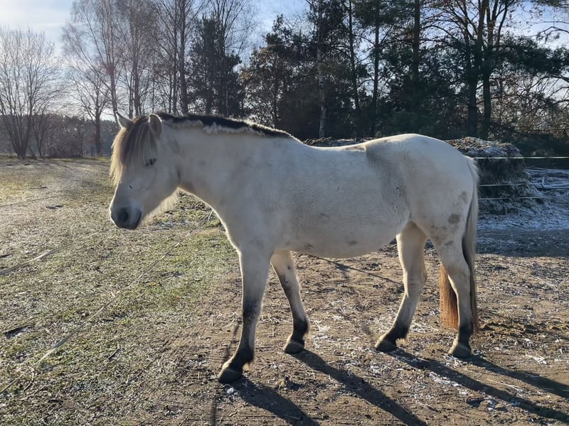 Wir verkaufen unsere selbstgezogene weiße Fjordstute. Inskar ist 04.2022 bei uns auf dem Hof geboren und aufgewachsen zwischen Kindern, Traktoren, Hunden und dem alltäglichen Hofgewusel. Dabei ist sie an Spazierengehen, Ausreiten als Handpferd, Bodenarbeit, Sattel und Geschirr gewöhnt und dabei sehr gelassen. Sie ist super menschenbezogen, verkuschelt und hat einen sehr offenen, neugierigen und unerschrocken Charakter. Sie hat den ersten Platz auf der Fohlenschau gewonnen und hat volle Papiere, ihre Mutter ist vor Ort. Ihr Stockmaß beträgt im Moment ca. 143 cm. Wir verkaufen sie als Zuchtstute, da sich 2024 durch eine Verletzung am Bein ihre Sehne entzündet hat und sie deshalb nicht reiterlich belastbar sein wird. AKTUALISIERUNG: Tierarztbericht vom 16.12.25 Die aktuelle Beugeprobe war negativ, also die Stute ist lahmfrei. Der Tierarzt empfiehlt ihr nochmal ca. ein halbes Jahr Pause zu geben, damit sich die Verletzung (wahrscheinlich am Fesselträger) auskurieren kann und er sieht dann aber durchaus, dass sie wieder belastbarer ist, (leichte Arbeit, Zucht ). Er schließt auch nicht aus, dass sie perspektivisch wieder reitbar ist. Die Zähne, Hufe und Wurmkuren sind regelmäßig gemacht, Zahnpass ist vorhanden. Bei Fragen oder Interesse gerne melden.