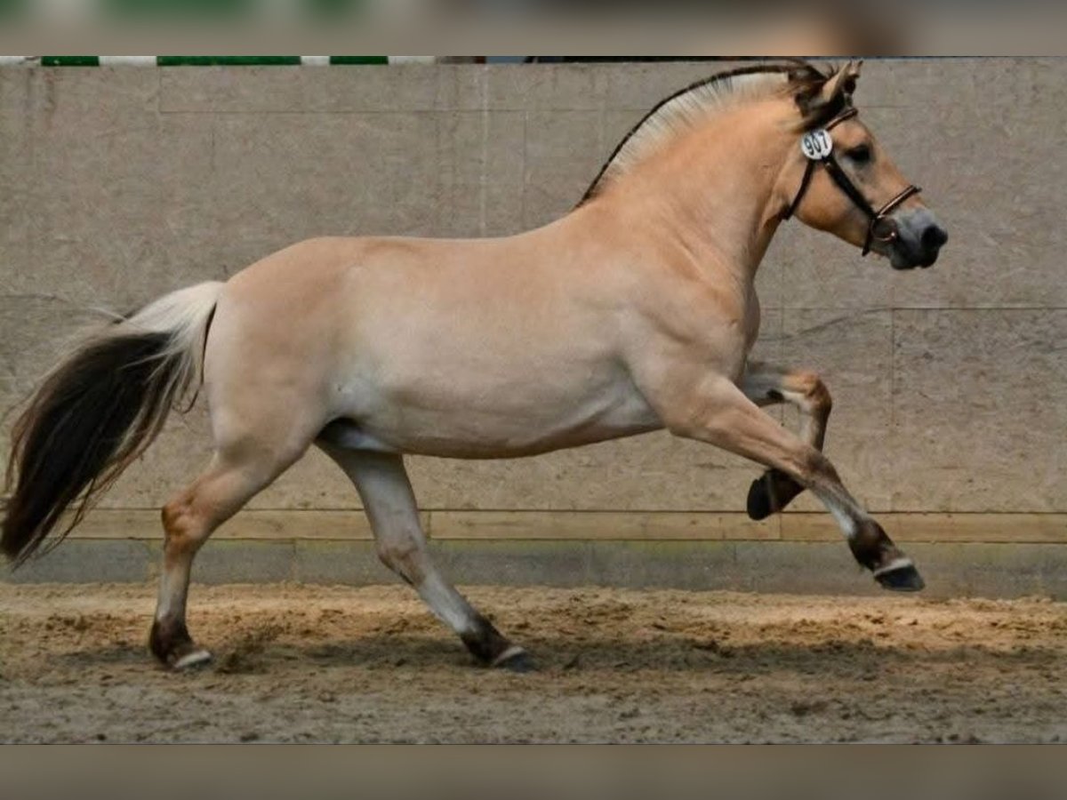 Klosterhofs Hulapalu was born here at Fjordgestüt Klosterhof and was raised with great dedication within the Fjord herd. She received a foal premium, a two-year-old premium, and is a candidate for the state premium at the elite mare show. She has also been successful at shows across the country. Currently, she is being gently prepared for a riding career and trained with great care. She consistently shows motivation and good manners. Her sire is the original Norwegian-approved stallion Resen, who holds numerous titles such as Norwegian Quality Stallion, Elite Stallion, Performance Stallion, and Federal Reserve Champion Stallion, among others. Her white-dun dam, Hjelka, is also an elite mare and holds the title of State Premium Mare due to her successful offspring. She is a broodmare with many rideable and successful descendants. Hulapalu is very social, regularly dewormed, vaccinated, and has been presented to osteopaths, farriers, dentists, etc. She has been raised and trained with the utmost care. We are looking for a responsible home where she will be loved and supported. Proper, species-appropriate keeping is a prerequisite. Hulapalu is very human-oriented and absolutely lovable.