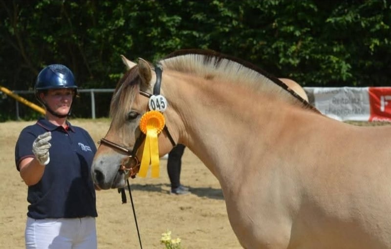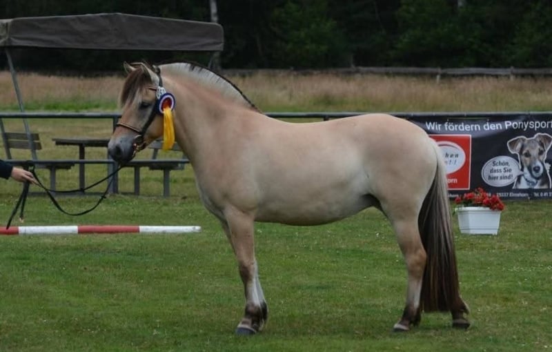 Klosterhofs Hulapalu ist bei uns auf dem Fjordgestüt Klosterhof geboren und wurde mit viel Herzblut in der Fjordherde aufgezogen. Sie erhielt eine Fohlenprämie, eine Zweijährigenprämie und die Staatsprämienanwartschaft auf der Elitestutenschau. Auch bundesweit war sie erfolgreich auf Schauen unterwegs. Derzeit wird sie schonend auf das Reitpferdeleben vorbereitet und mit viel Sorgfalt ausgebildet. Dabei zeigt sie sich stets motiviert und brav. Ihr Vater ist der original norwegisch gekörte Hengst Resen, der alle möglichen Titel wie norwegischer Qualitätshengst, Elitehengst, Leistungshengst, Bundesreservesiegerhengst uvm trägt . Ihre weißfalbe Miutter Hjelka ist auf Grund ihrer Nachzucht auch Elitestute und trägt den Titel Staatsprämienstute. Sie ist Hengstmutter und hat viele rittige und erfolgreiche Nachkommen. Hulapalu ist sehr sozial, stets enwurmt, geimpft, dem Ostheopaten, Schmied, Zahnarzt usw vorgestellt und mit sehr viel Sorgfalt ausgebildet und aufgezogen. Wir wünschen uns ein verantwortungsbewusstes Zuhause, in dem sie geliebt und gefördert wird. Artgerechte Haltung sollte Voraussetzung sein. Hulapalu ist sehr menschenbezogen und absolut liebenswert.